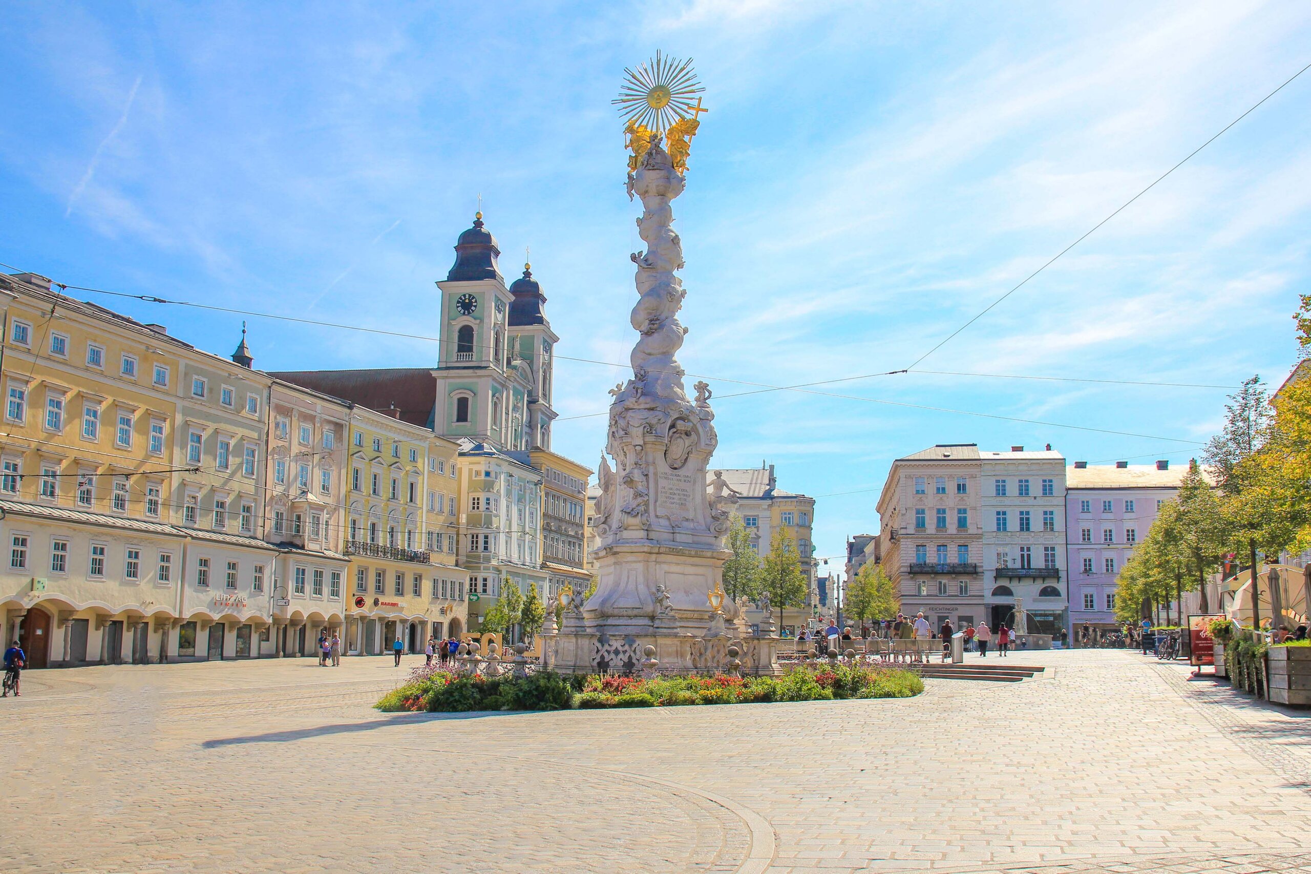 Der Hauptplatz in Linz bildet das Zentrum der Innenstadt und ist ein beliebter Treffpunkt für Einheimische und Touristen. Er ist mit 13.140 m² einer der größten umbauten Plätze Österreichs und somit eine echte Besonderheit. Bereits im Jahr 1230 angelegt, verzaubert dieser historische Ort noch heute mit einer extra Portion Charme, wunderschönen Bauwerken und speziell mit der eindrucksvollen Dreifaltigkeitssäule. Interessant zu hören ist auch das Glockenspiel am Feichtinger-Haus, das täglich um 11:03 Uhr, 14:04 Uhr und 17:03 Uhr stattfindet und am besten in einem der hübschen Cafés genossen werden kann.