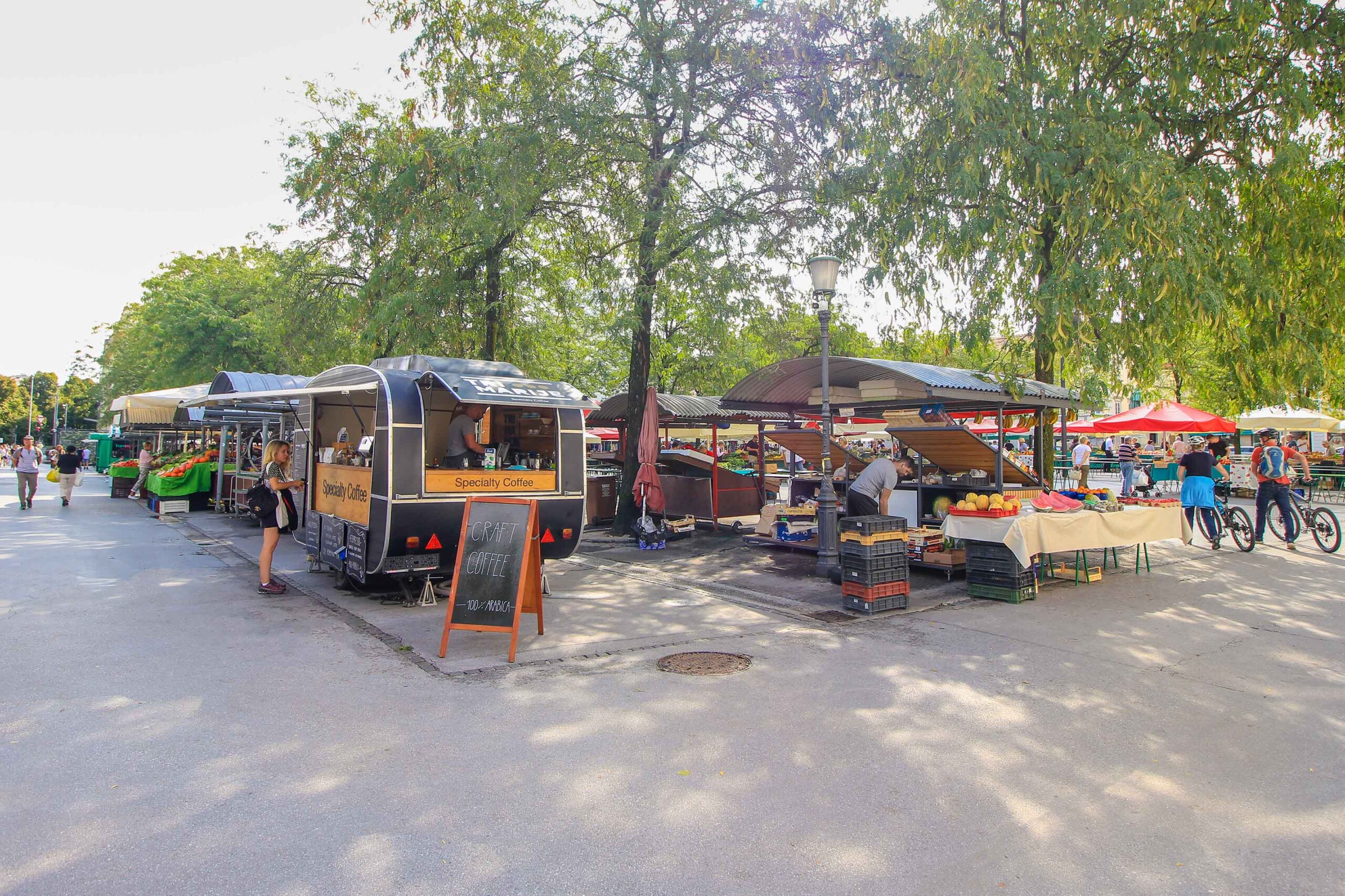 Ein Muss bei jeder Reise nach Ljubljana ist ein Besuch vom Zentralmarkt. Er ist seit jeher ein wichtiger Treffpunkt für Einheimische, aber auch für viele Touristen, die in das authentische slowenische Marktleben eintauchen möchten. Das große Areal des Zentralmarktes umfasst Außenflächen auf dem Platz Vodnikov und dem Platz Pogačarjev. Zudem gibt eine Markthalle zwischen den beiden Plätzen sowie das wunderschöne Marktgebäude am Fluss Ljubljanica, welches vom Architekten Jože Plečnik entworfen wurde. Eine echte Besonderheit in Ljubljana ist das Event Open Kitchen „Odprta kuhna“, ein richtig cooler Streetfood-Markt mit zahlreichen kulinarischen Höhepunkten. Es findet von Frühling bis Herbst jeden Freitag statt.
