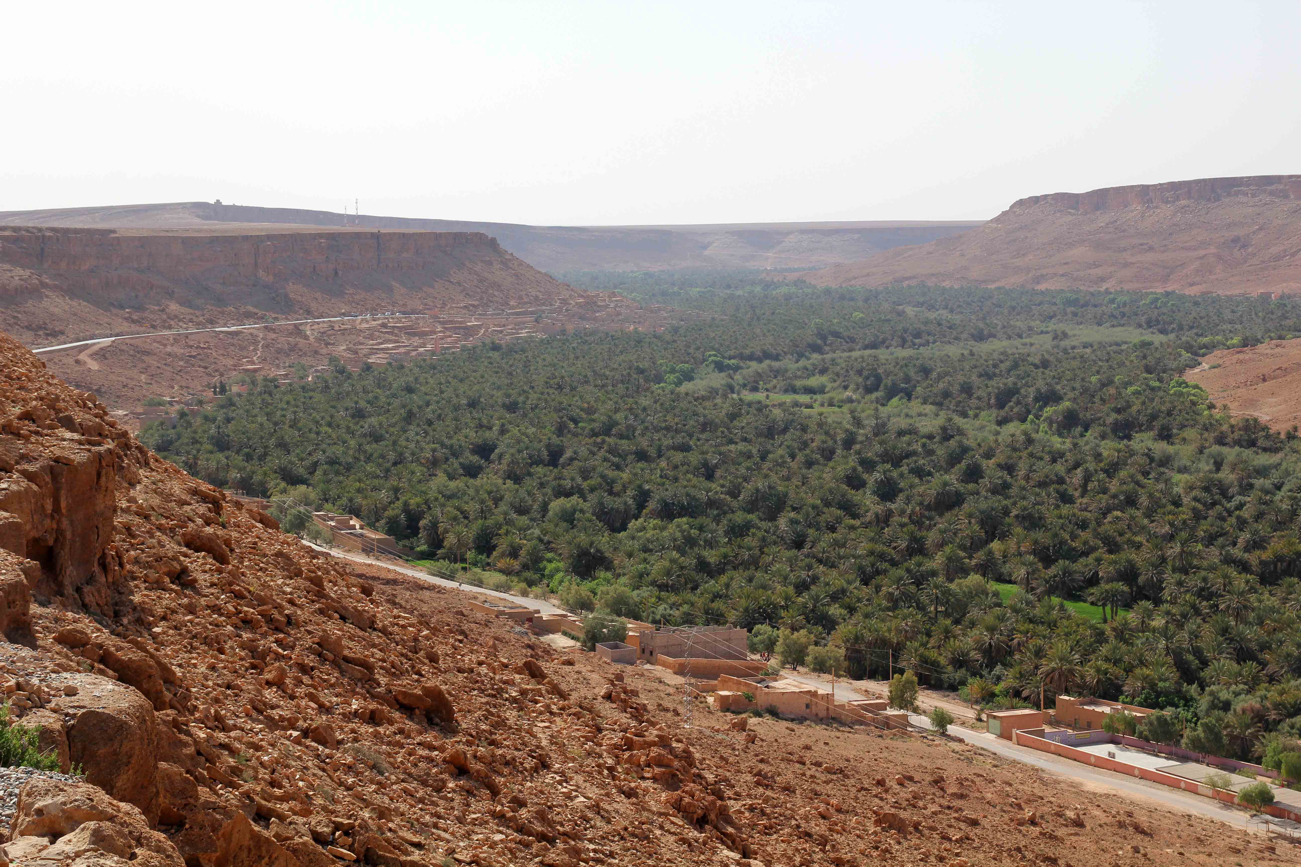 Am späten Nachmittag kamen wir schließlich nach ca. 125 Kilometern Fahrt in El-Kelaa m’Gouna, der Ortschaft, in der das Rosental beginnt, an. Auf der Fahrt durch das Tal zu unserer Unterkunft machten wir eine kurze Pause beim Aussichtspunkt zum Kasbah Itran, was auch sehr empfehlenswert ist.