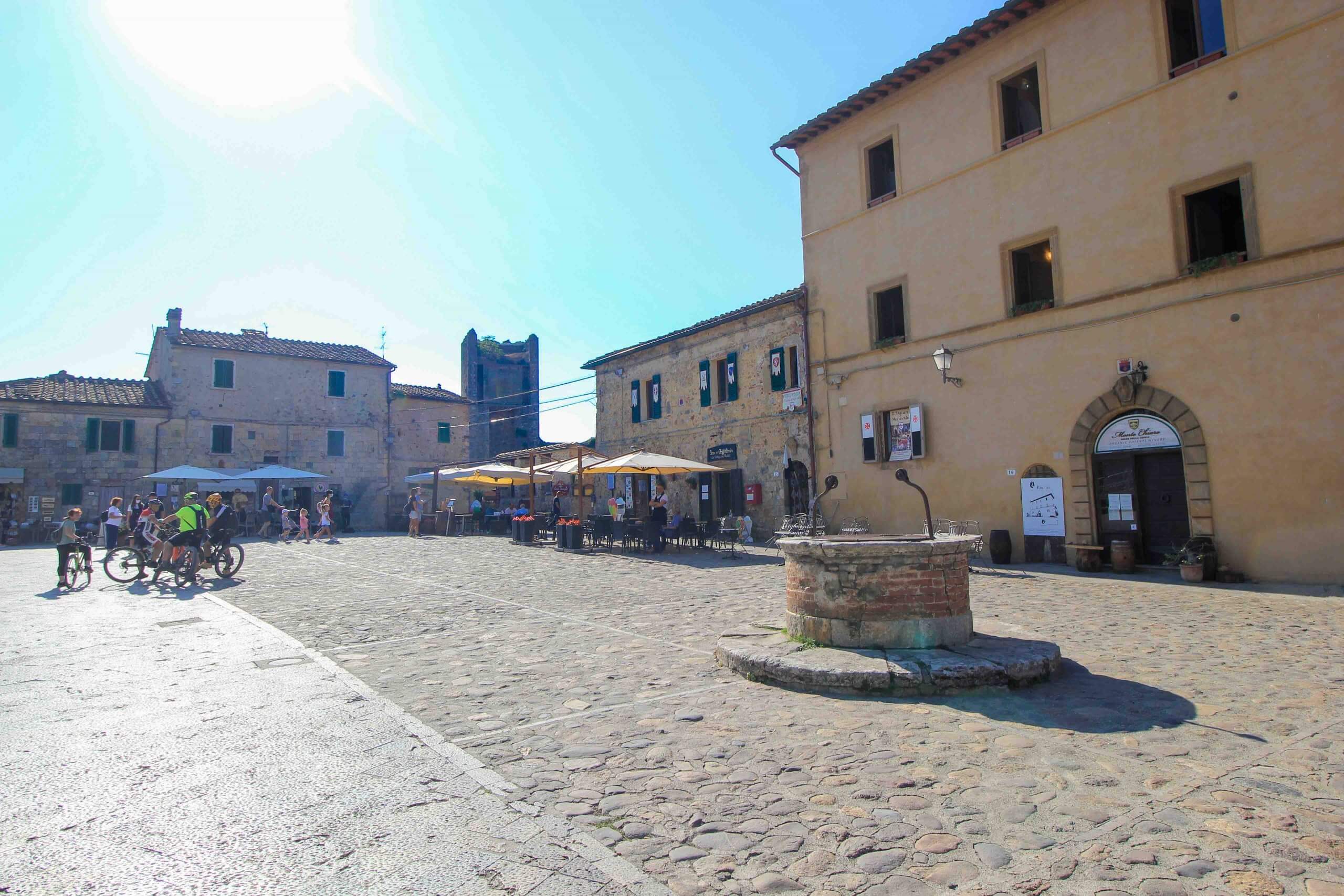Der Piazza Roma ist das Herzstück der Altstadt von Monteriggioni. Rund um diesen malerischen Platz liegen einige wirklich gute Restaurants und gemütliche Cafés, in denen man ganz wunderbar das Treiben am Hauptplatz genießen kann. In der Mitte steht ein kleiner Steinbrunnen, der einen besonders beliebten Fotospot darstellt. Für Touristen ist das Parken in der Altstadt verboten, ein Grund mehr, warum das Zentrum so viel historischen Charme versprüht.