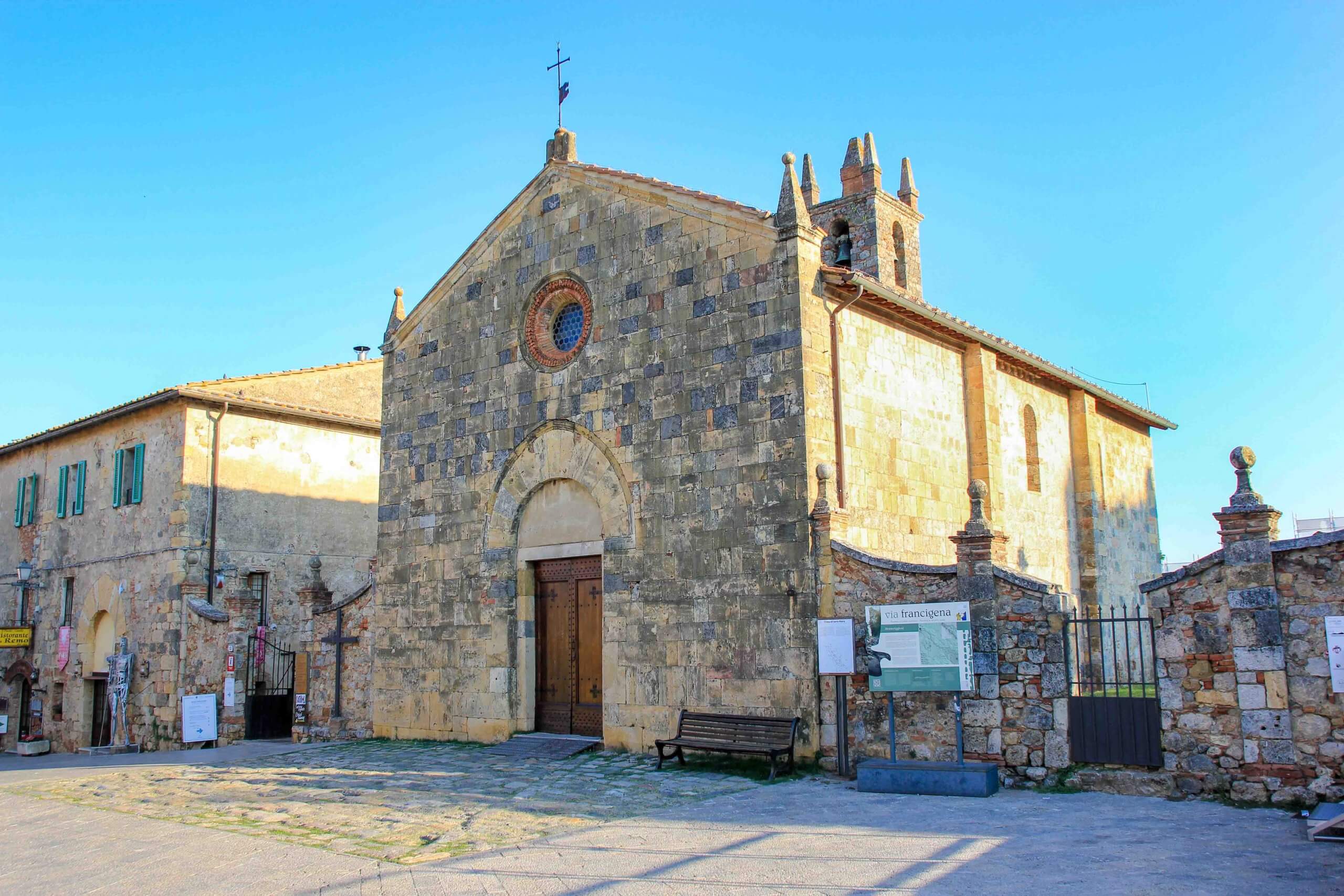 Eine der schönsten Sehenswürdigkeiten von Monteriggioni ist die kleine Kirche Santa Maria Assunta aus dem 13. Jahrhundert. Sie liegt am Hauptplatz, dem Piazza Roma, und die Fassade ist noch im Originalzustand. Die Geschichte der Kirche ist eng mit der Geschichte von Monteriggioni verbunden, denn sie wurde im selben Gründungsjahr der Burg erbaut. Die historische Kirche ist somit, neben der imposanten Wehrmauer, die älteste Attraktionen der Ortschaft. Erst später, Ende des 18. Jahrhunderts, wurde der Glockenturm errichtet.