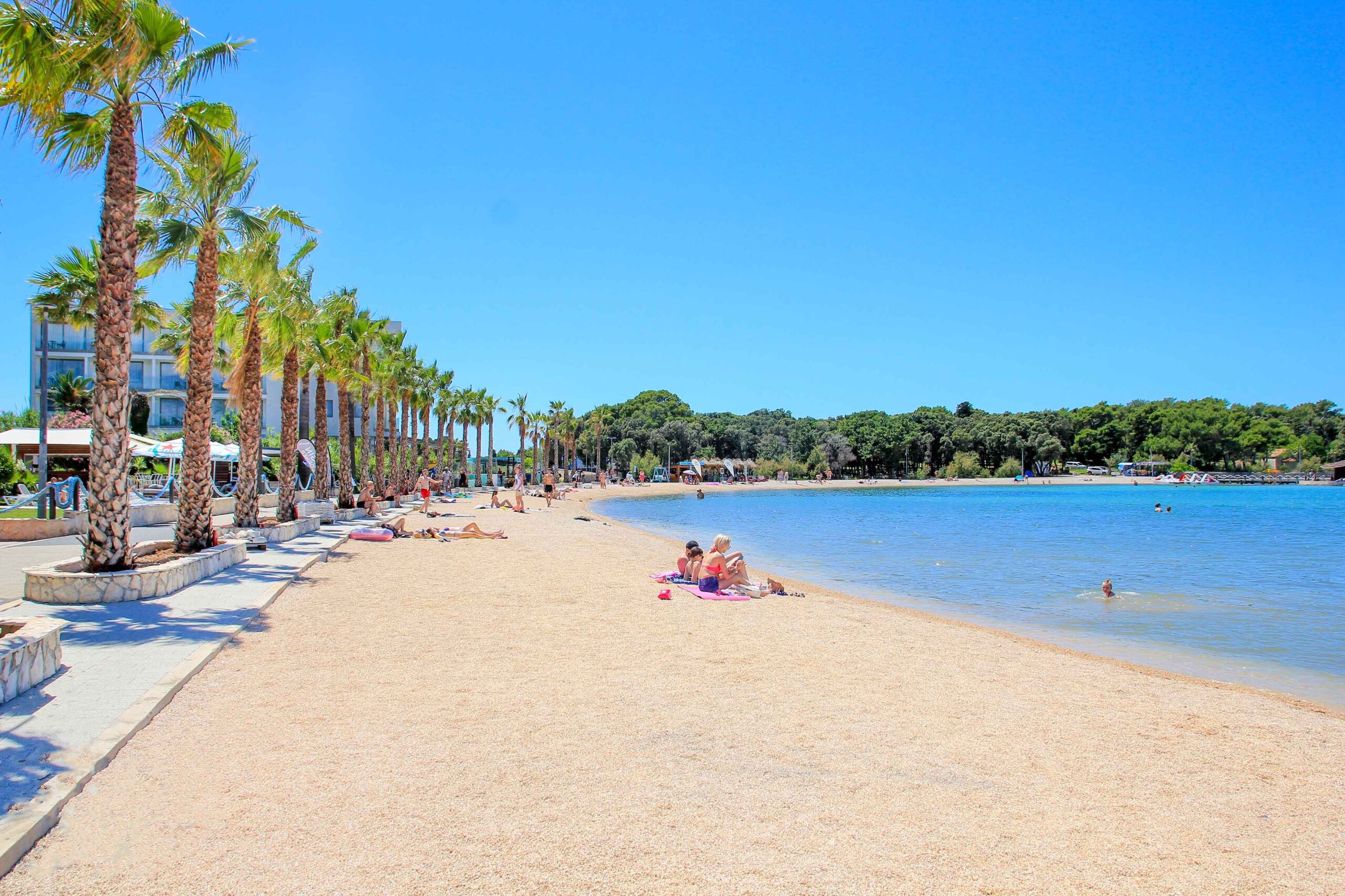 Der Plaza Lokunje ist der wunderschöne Stadtstrand in Novalja und kann zu Fuß in wenigen Minuten vom Zentrum aus über die Uferpromenade erreicht werden. Besonders beeindruckend sind die hohen Palmen, die dem Strand Lokunje sein charakteristisches Aussehen und der Stadt Novalja einen Hauch von Karibik verleihen. Dieser Küstenstreifen ist ein beliebter Treffpunkt für Einheimische und Touristen gleichermaßen, denn hier heißt es, sehen und gesehen werden! Urlauber erwartet nicht nur ein herrlicher Kieselstrand mit traumhaften Wasserfarben, auch die Urlaubsstimmung mit den Strandbars ist einmalig.