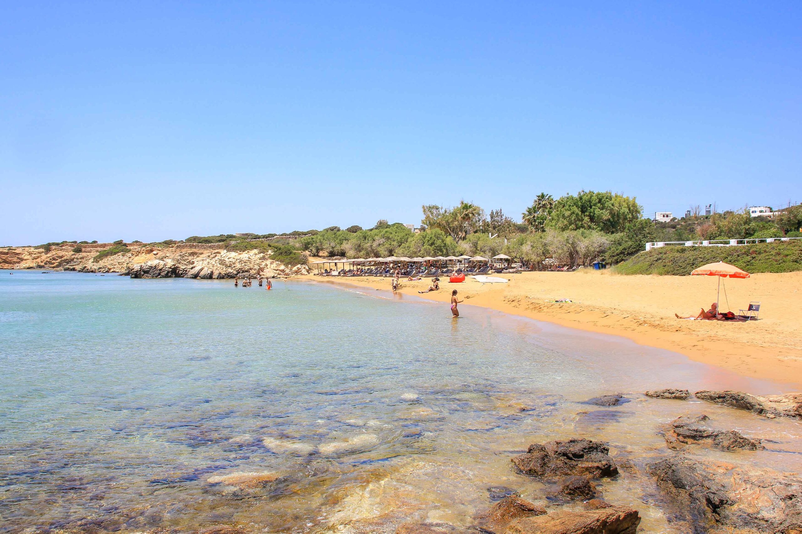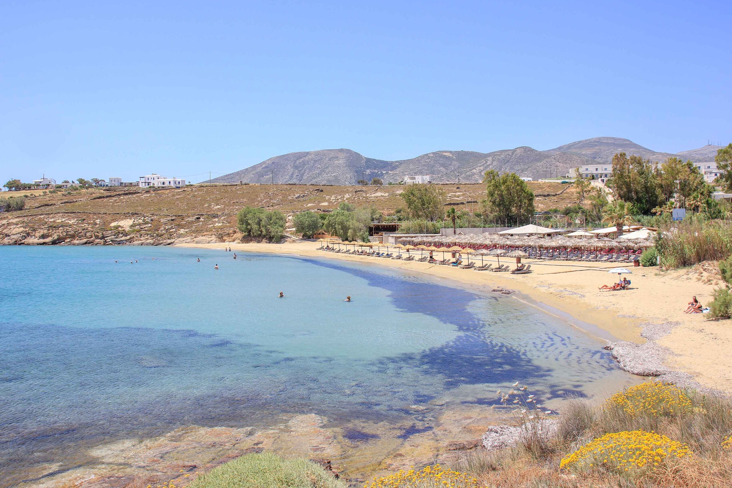 Tipp: Hinter der Bucht liegt das Seven Santa Maria, ein bezauberndes Hotel im Kykladenstil, welches für seine Gäste kostenfreie bequem Liegen und Sonnenschirme bereitstellt.