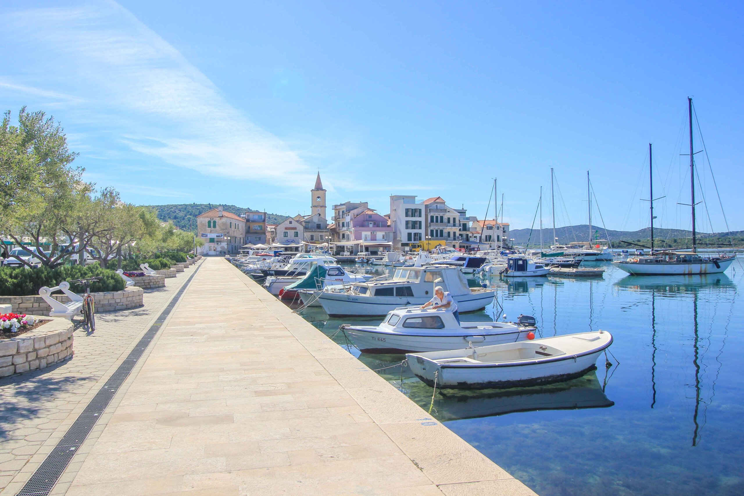 Die charmante Marina Pirovac liegt wunderschön mit direktem Blick auf die kleine Altstadt. Dank der optimalen Lage ist dieser Hafen ein beliebter Ausgangsort für Bootsausflüge und Segeltouren in die vorgelagerte Inselwelt. Hier starten unter anderem Fahrten zu den Kornati Inseln, zum Naturpark Telascica und auch in den Krka Nationalpark. Entlang der Promenade liegen zudem ein paar gemütliche Cafés, in denen man bei einem Gläschen heimischen Wein oder Kaffee ein unverkennbares Ambiente erlebt.