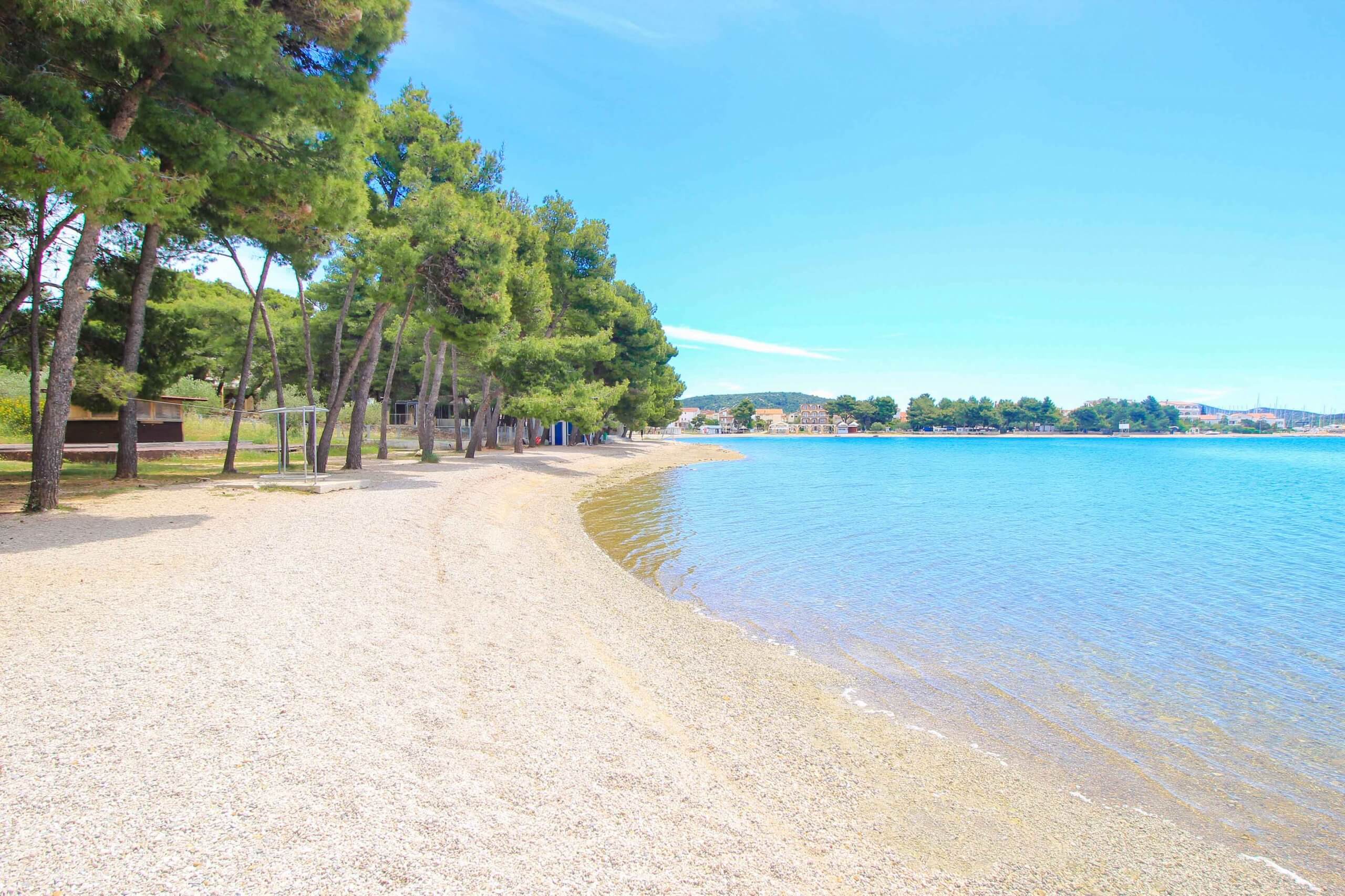 Der Strand Miran ist eine schöne, kleine Kieselsteinbucht im Norden des Urlaubsortes Pirovac. Hier trifft man vorwiegend auf Gäste des Hotels Miran und auf Urlauber des Camps „Miran“. Fabelhaft ist, dass auch diese Bucht sanft ins Meer abfällt und sich somit optimal für Familien mit Kindern eignet. Wem es an Sommertagen zu heiß wird, der findet ein kühles Plätzchen unter den hohen Bäumen, die dem Strand obendrein das gewisse Etwas verleihen.
