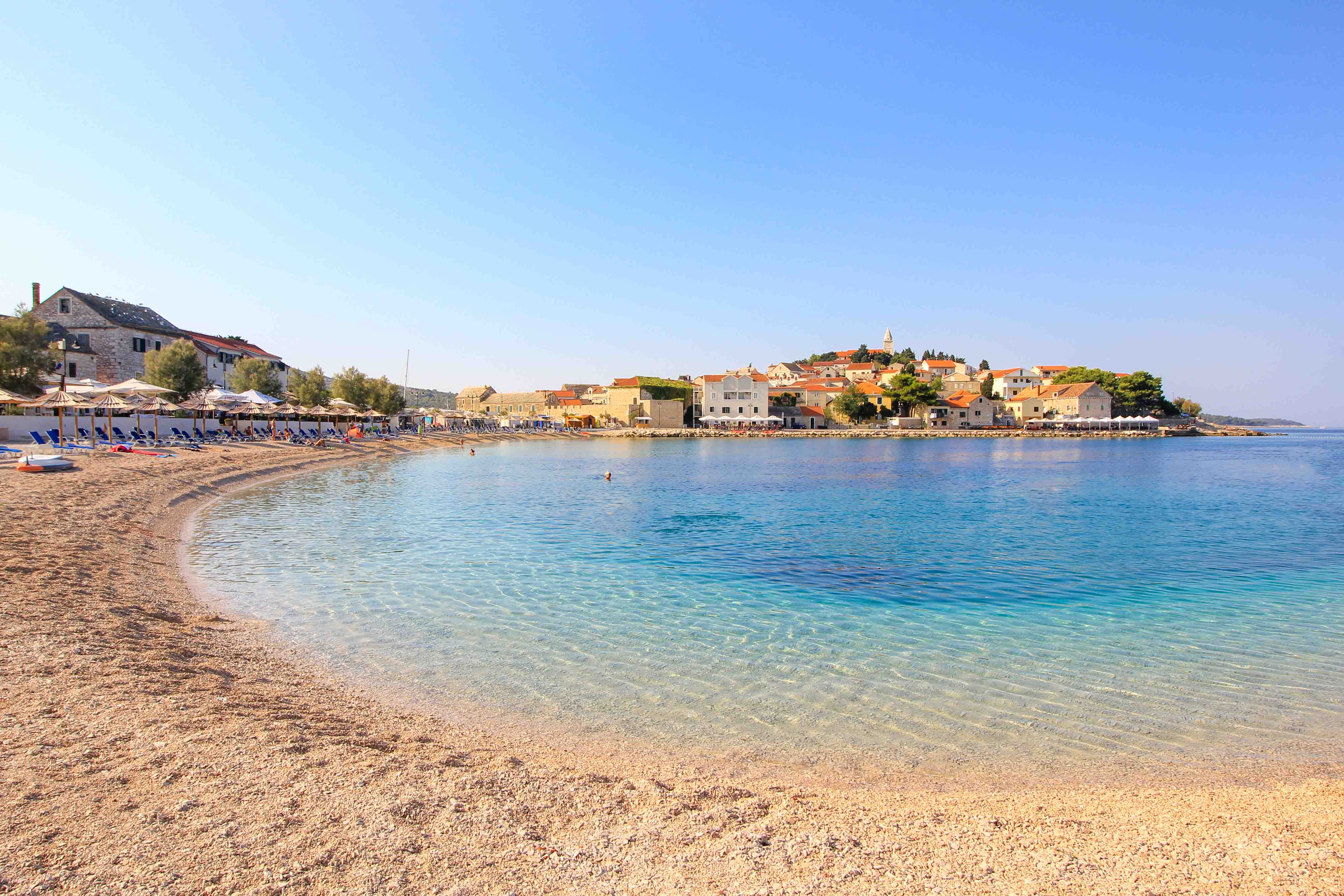 Die traumhaften Strände in Primosten eignen sich bestens für einen Badeurlaub. Viele der Buchten sind Kieselstrände, und wie fast überall in Kroatien sollte man daher seine Badeschuhe nicht vergessen.