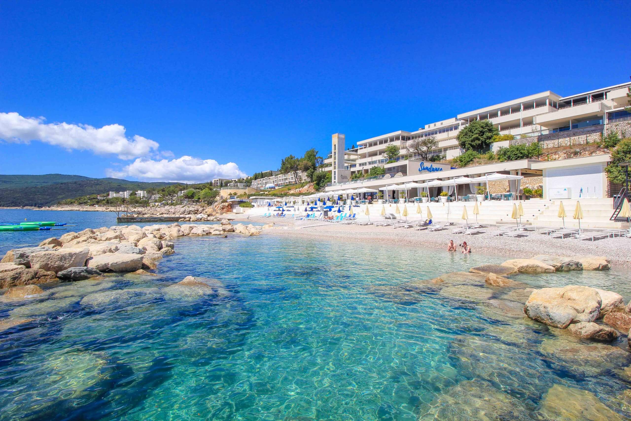 Tipp: In der Nähe vom Strand befindet sich das schöne Valamar Sanfior Hotel & Casa, ein beliebtes Hotel für einen ganz besonderen Badeurlaub in Rabac!