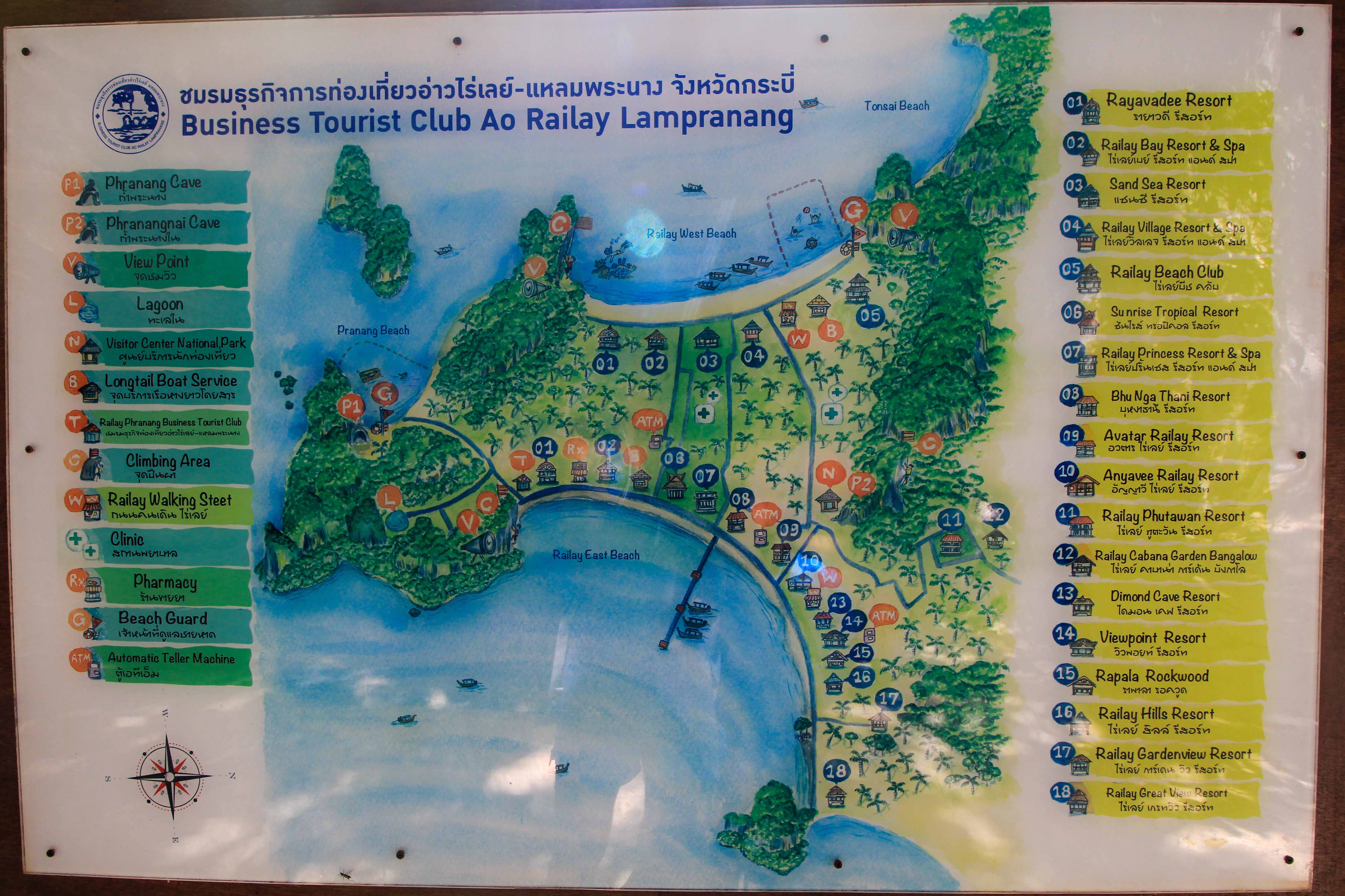 Karte der Railay Beach Halbinsel