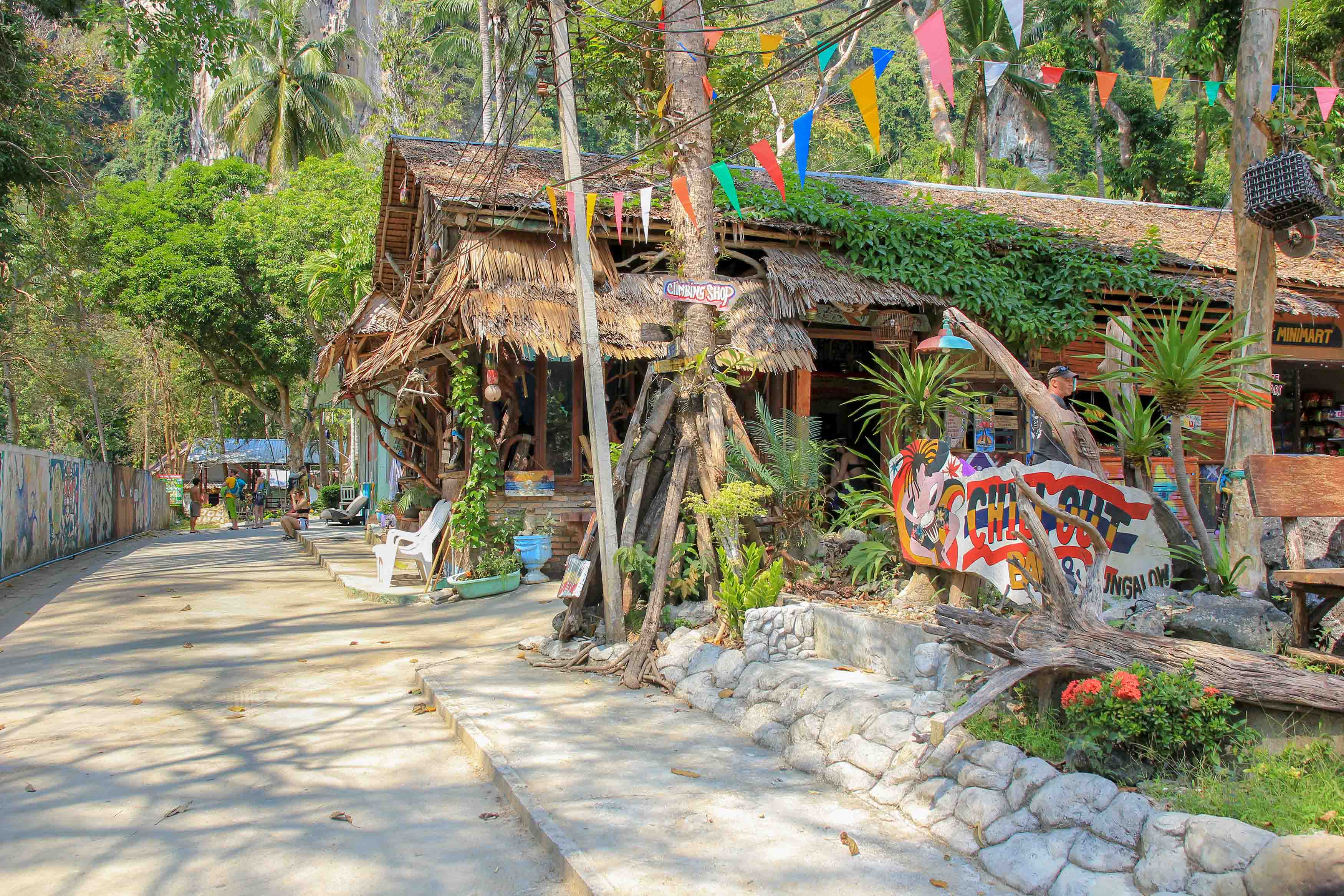 Der Tonsai Beach befindet sich im Norden von Railay, etwas abgelegen von den anderen 3 Stränden der Halbinsel. Vielleicht gilt er gerade dank seiner Abgeschiedenheit noch immer als Geheimtipp unter Backpackern, Kletterern und Individualreisenden. Auch wir haben uns dort wohlgefühlt! Hier merkt man kaum was vom Trubel der Nachbarstrände und auch die Hippie-Szene ist richtig gemütlich. Erreichbar ist dieser Strand von Railay Beach über eine 45-minütige Dschungelwanderung oder mit dem Longtailboot, welches zwischen den verschiedenen Stränden der Halbinsel verkehrt. Bei Ebbe kann man theoretisch auch direkt dem Meer entlangwandern.