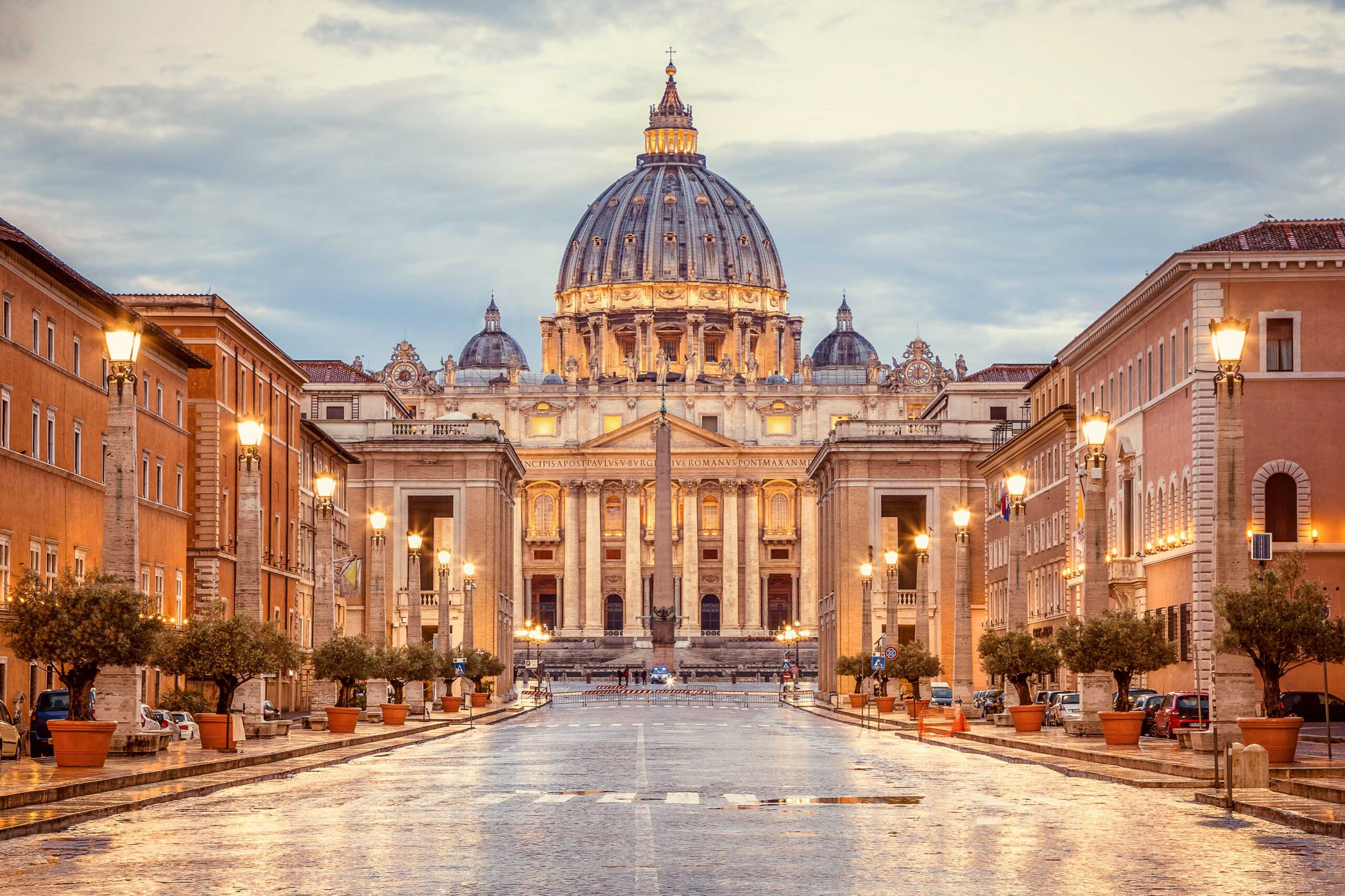 Der Petersdom, offiziell benannt als die Basilika Sankt Peter im Vatikan, ist eines der bedeutendsten Sakralbauwerke in Europa und eine der berühmtesten Attraktionen in Rom. Diese imposante Kirche steht auf dem Petersplatz im Vatikan und beeindruckt durch seine monumentale Architektur. Sie ist auch die letzte Ruhestätte mehrerer Päpste, darunter Papst Johannes Paul II. Der Bau des Petersdoms begann bereits im Jahr 1506 und dauerte über 100 Jahre. Künstler wie Michelangelo und Gian Lorenzo Bernini waren bei der Gründung beteiligt. Ein Highlight ist die Kuppel des Petersdoms, die von Michelangelo entworfen wurde und eine atemberaubende Aussicht auf Rom bietet. Sehenswert ist zudem das Innere der Kirche mit den Statuen, Altären und Fresken.