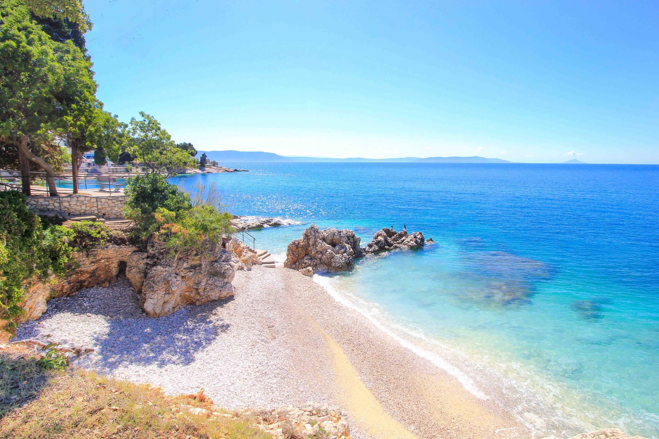 Der Sveti Andrae Strand liegt im Urlaubsort Rabac und zählt für viele zu den schönsten Badestränden an der Ostküste von Istrien. Bei diesem Strandabschnitt handelt es sich um einen Mix aus kleinen Kieselbuchten und Steinstränden, die mit fabelhafter Ausstattung und Sauberkeit begeistern. Urlauber lieben hier die außergewöhnlich schöne Kulisse mit den unglaublichsten Meeresfarben, hellem feinen Kiesel und den pittoresken Felsformationen. Hinter dem Strand verläuft zudem eine bezaubernde Uferpromenade, die zum Zentrum von Rabac führt, und an der zahlreiche Cafés und Restaurants zum gemütlichen Verweilen einladen.