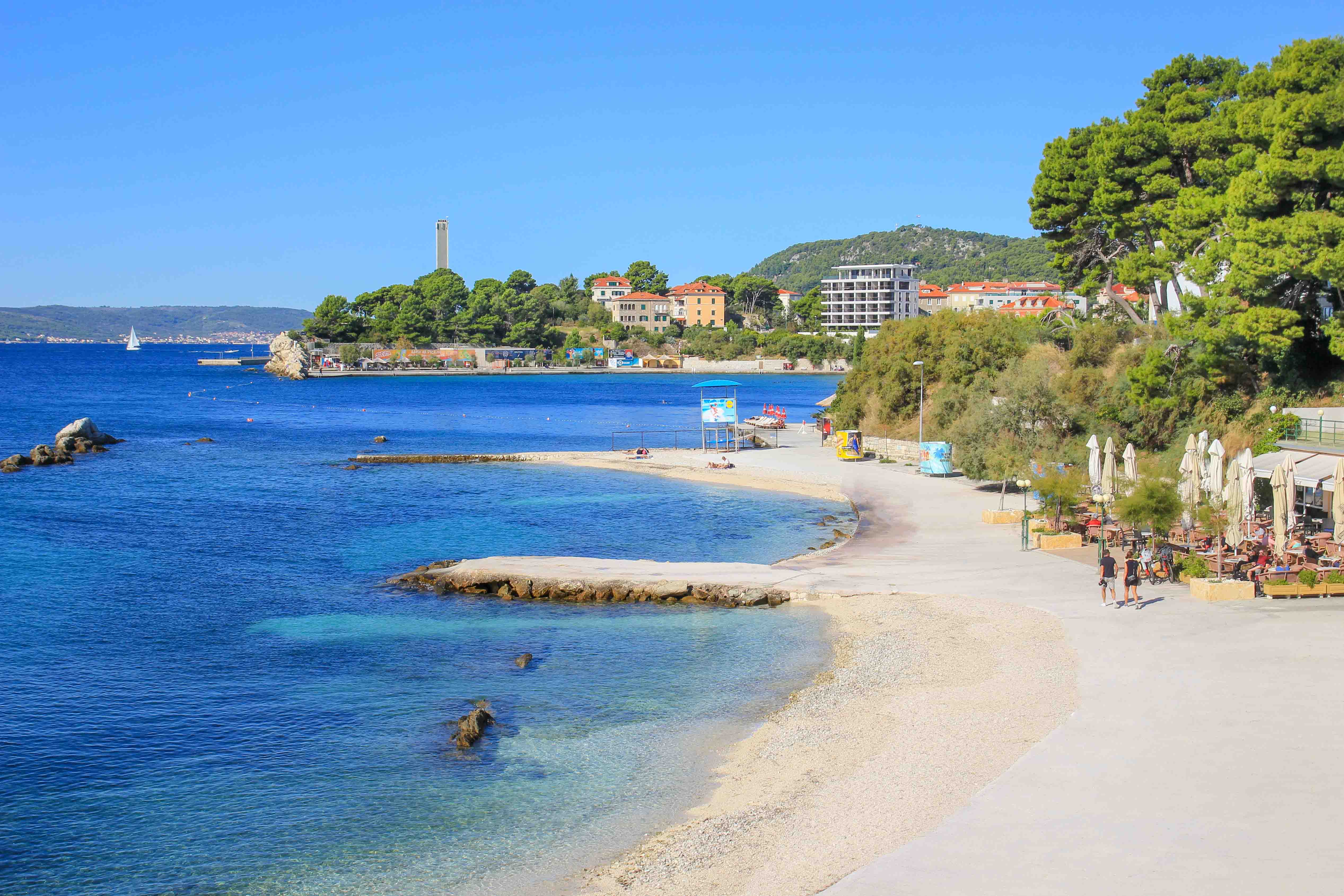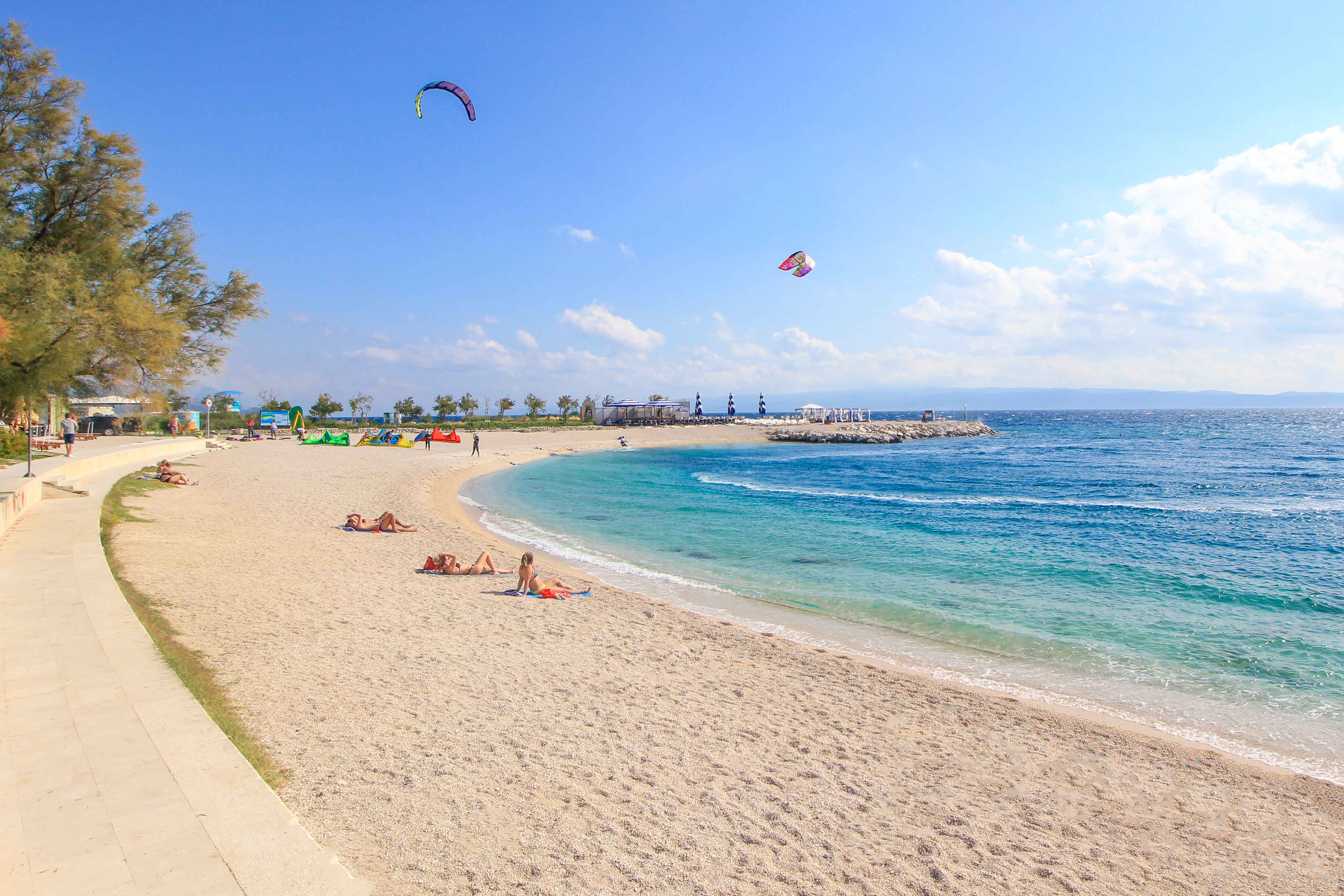 Eine grandiose Empfehlung unter den besten Stränden in Split ist die Bucht des Radisson Blu Hotels. Sie ist genau genommen ein besonders malerischer Abschnitt des Plaza Trestenik und wird vom Hotel ständig gepflegt und instand gehalten. Der komplette Strand ist daher sehr sauber und eignet sich optimal zum Schwimmen. Natürlich können hier auch Nicht-Hotelgäste ihr Badetuch ausbreiten und im türkisblauen Meer baden. Wer mag, gönnt sich eine VIP-Liege oder genießt ein Getränk in der Mistral Bar & Restaurant, das ganz nebenbei zu den coolsten Beach-Clubs von Split zählt. Auch Wassersport-Fans werden an diesem Küstenstreifen ihre Freude haben, denn bei gutem Wind ist dieser Strandabschnitt auch ein cooler Spot zum Surfen sowie zum Kite-Surfen.