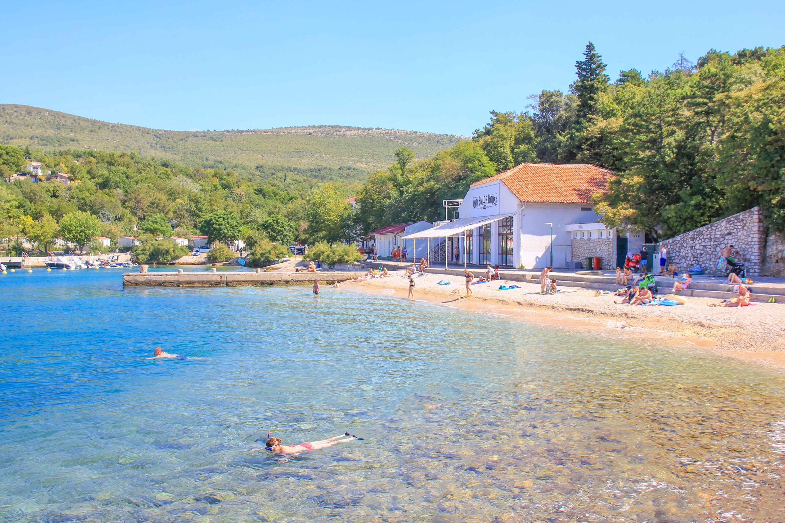 Der Plaza Karlovac ist ein echter Geheimtipp der schönsten Strände in Selce. Diese malerische Kieselsteinbucht liegt im Norden des Urlaubsortes und begeistert mit einer Kulisse wie aus dem Reisemagazin. Eindrucksvoll sind insbesondere die türkisblauen Meeresfarben, die gemeinsam mit den Felsformationen ein zauberhaftes Panorama formen. Die Badebucht vom Strand Karlovac liegt unter einer Feriensiedlung und wir meist nur von deren Gästen besucht. Ein Grund wohl, warum diese Bucht auch in der Hauptsaison nie übertrieben voll ist. Fabelhaft ist auch die kleine Beach-Bar hinter dem Strand, wo man leckeren Kaffee und kühle Getränke zum günstigen Preis bekommt.