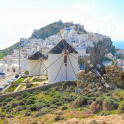 Tipp: Etwas oberhalb der Windmühlen befindet sich das Petrias Pool House, eine superhübsche Unterkunft mit einmaligem Blick über die wunderschöne Aussicht auf die Chora.