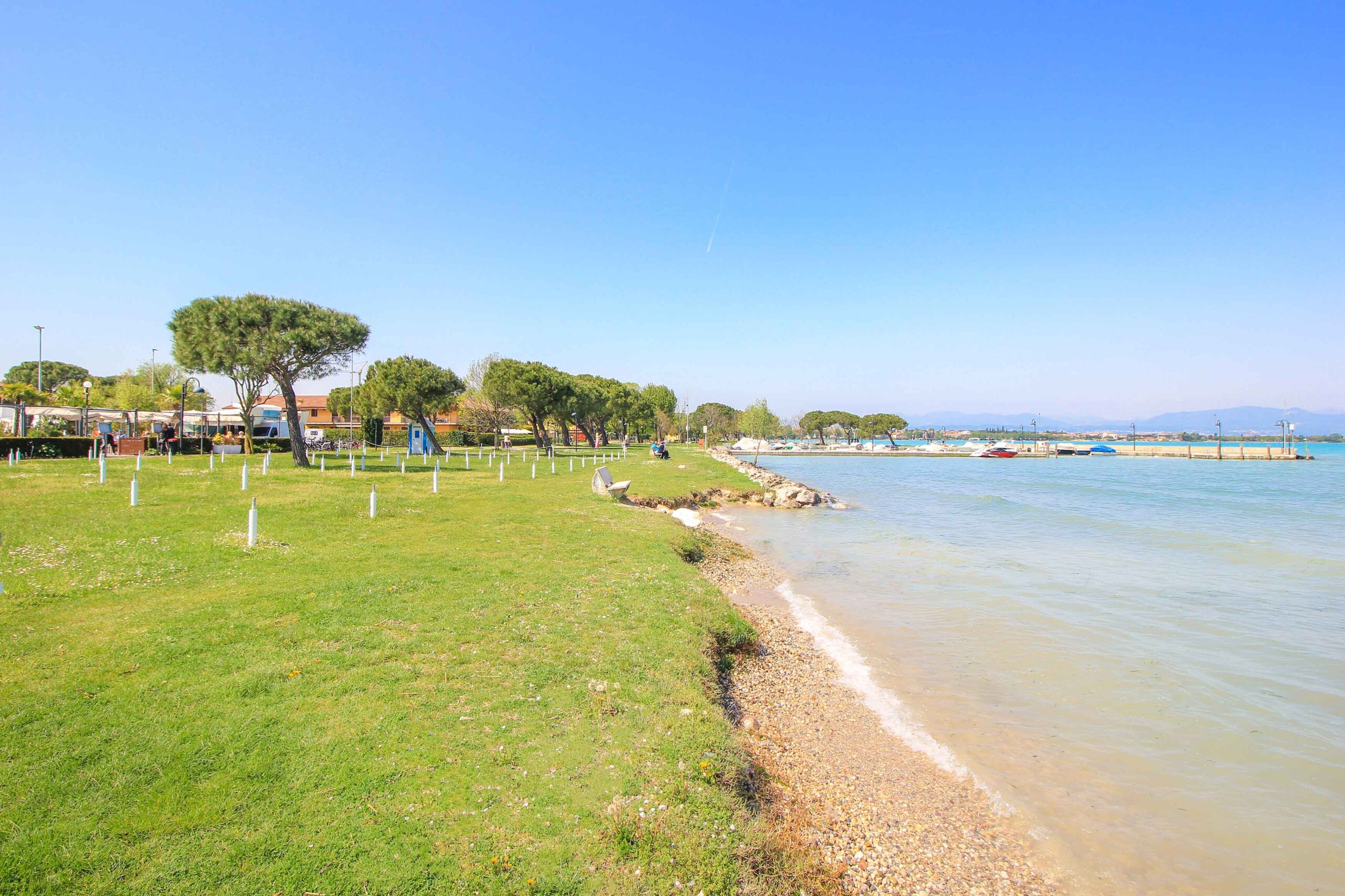 Ein beliebter Ort zum Baden und Sonnentanken ist der Spiaggia Lido delle Bionde. Dieser herrliche Seeuferabschnitt befindet sich an der Ostseite der Sirmione-Halbinsel, welchen du am besten über die oben erwähnte Panoramapromenade in wenigen Minuten vom Zentrum aus erreichst. Schon der Weg dorthin mit Blick auf den türkisblauen Gardasee und die Scaligerburg im Hintergrund ist ein Erlebnis für sich. Angekommen, erwartet dich ein toller Kieselstrand mit einem langen Badesteg, umgeben von herrlicher Natur. Wer mag, der kann sich obendrein ein Tretboot leihen und damit die Idylle von Sirmione vom Wasser aus genießen. Aus unserer Sicht lohnt es sich, hier ein paar Stunden am See einzuplanen!