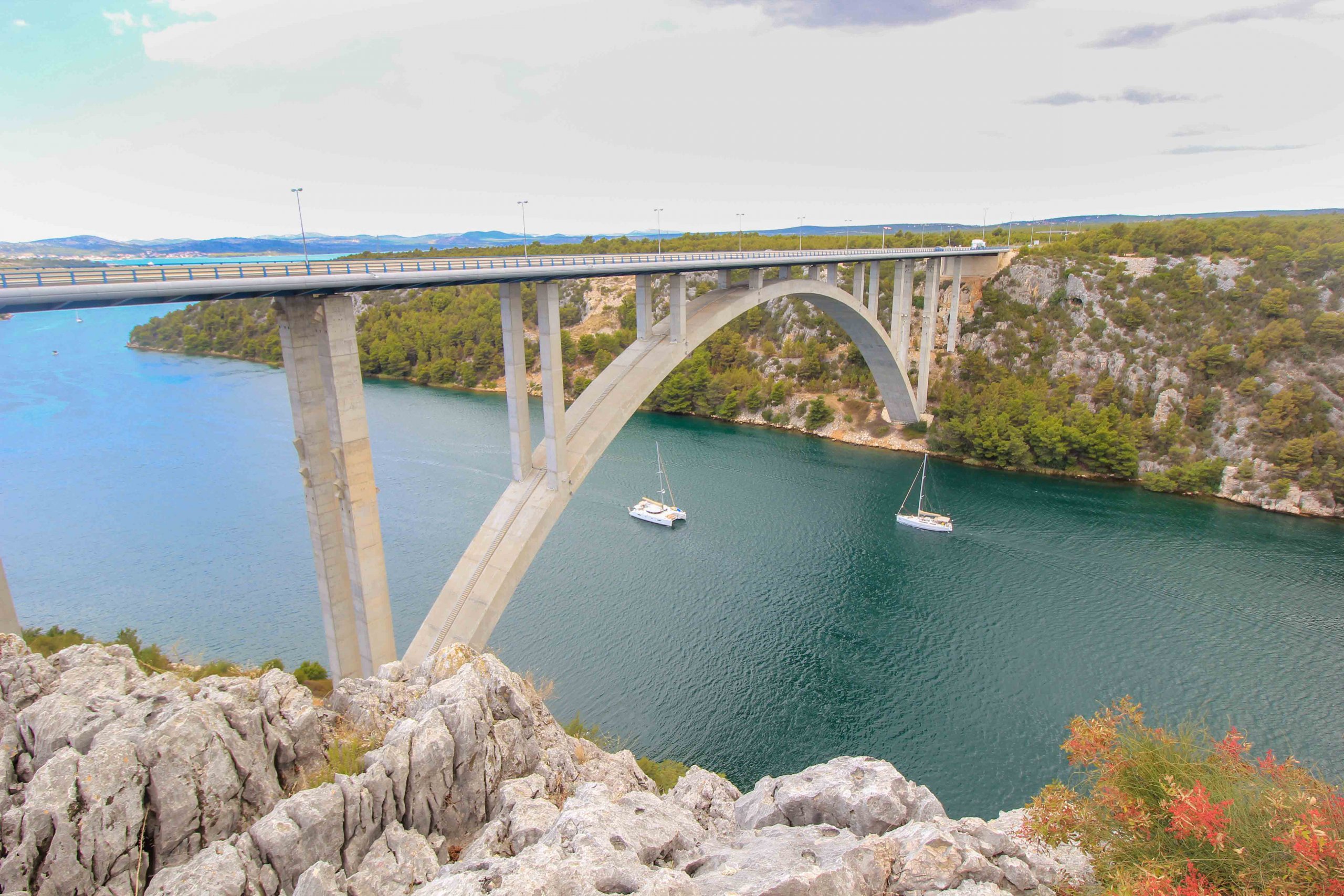 Eine schöne Sehenswürdigkeit und ein echter Geheimtipp ist der Aussichtspunkt Krka Belvedere. Dieser befindet sich an der Autobahn E65, wenn du vom Süden aus nach Skradin anreist. Direkt an der Autobahnraststätte Krka befindet sich die wohl schönste Aussicht auf Skradin und den beeindruckenden Krka-Fjord mit der imposanten Autobahnbrücke. Von hier oben kann man wunderbar die vielen Segelboote und Jachten beobachten, die vom Meer kommend, den Hafen von Skradin ansteuern.