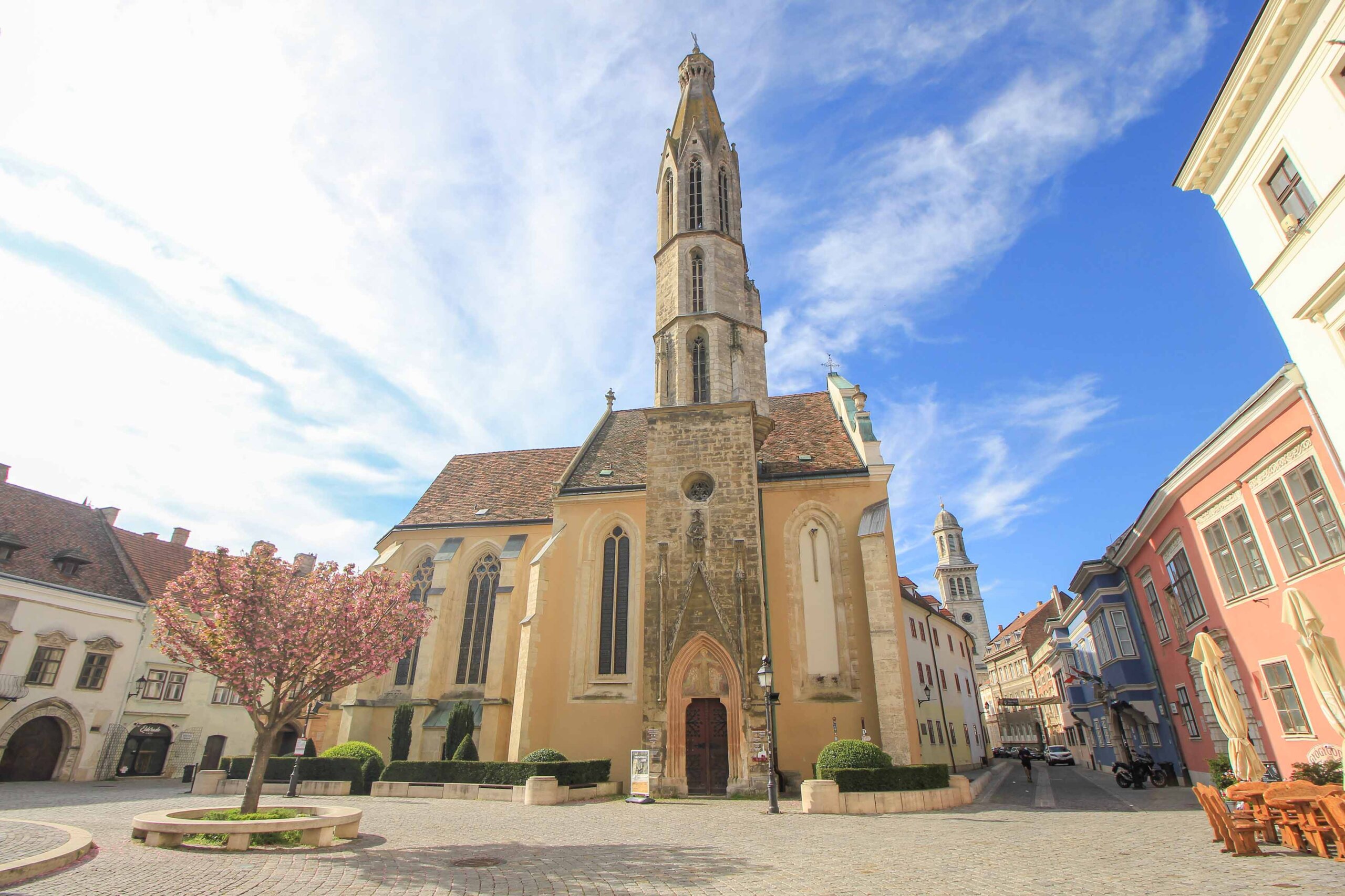 Eine der wohl schönsten Sakralbauten in Sopron ist die Geißkirche, welche sich direkt am Hauptplatz befindet. Auch als die „Benediktinerkirche – Bencés templom“ bekannt, ist sie ein gotisches Meisterwerk aus dem Jahr 1280 und wurde zu damaliger Zeit von den Franziskaner-Mönchen als Klosterkirche erbaut. Ihren ungewöhnlichen Namen verdankt sie einer Legende, nach der Ziegen einst an diesem Ort Goldstücke aus der Erde scharrten, die den Bau ermöglichten. Schon von außen sehenswert, ist auch das Innere mit dem gotischen Gewölbe, dem barocken Hochaltar und den wertvollen Kunstwerken beeindruckend.