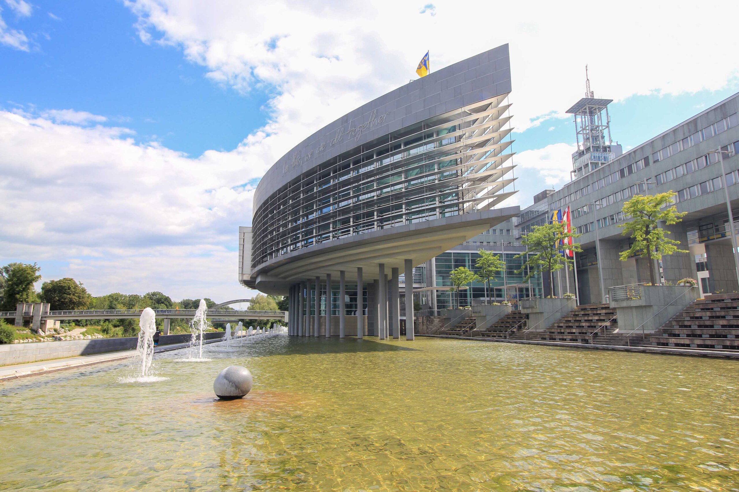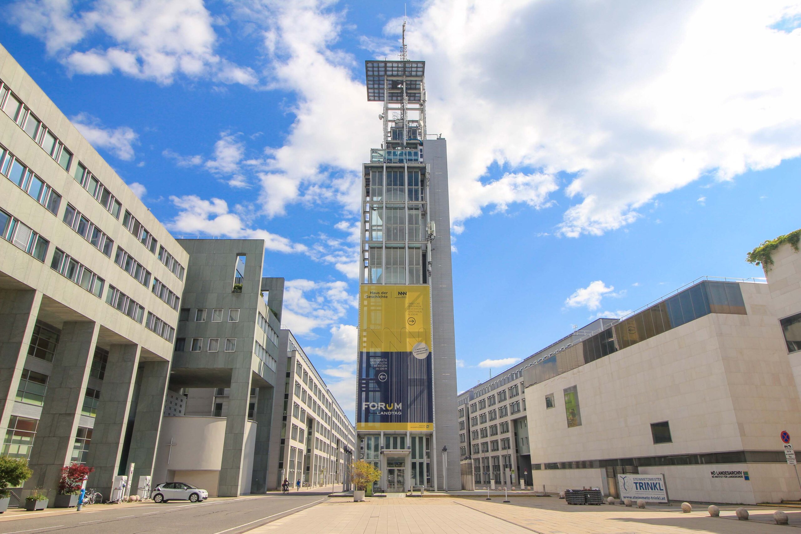 Das sogenannte Landtagsschiff ist eine der meistfotografierten Sehenswürdigkeiten in St. Pölten. Dieses markante Bauwerk befindet sich im modernen Regierungsviertel, das seit 1997 das politische Zentrum Niederösterreichs bildet. Das Landtagsschiff, Teil dieses futuristischen Ensembles, beherbergt den Sitzungssaal des niederösterreichischen Landtags und beeindruckt durch seine außergewöhnliche Architektur. Das Bauwerk steht auf Stützen und scheint über einem Wasserbassin zu schweben. Zudem kann man in der Nähe vom Landtagsschiff weitere Attraktionen finden wie den ikonischen Klangturm, der nur ein paar Schritte entfernt liegt, und von dem man eine grandiose Aussicht auf das Regierungsviertel in St. Pölten erleben kann.