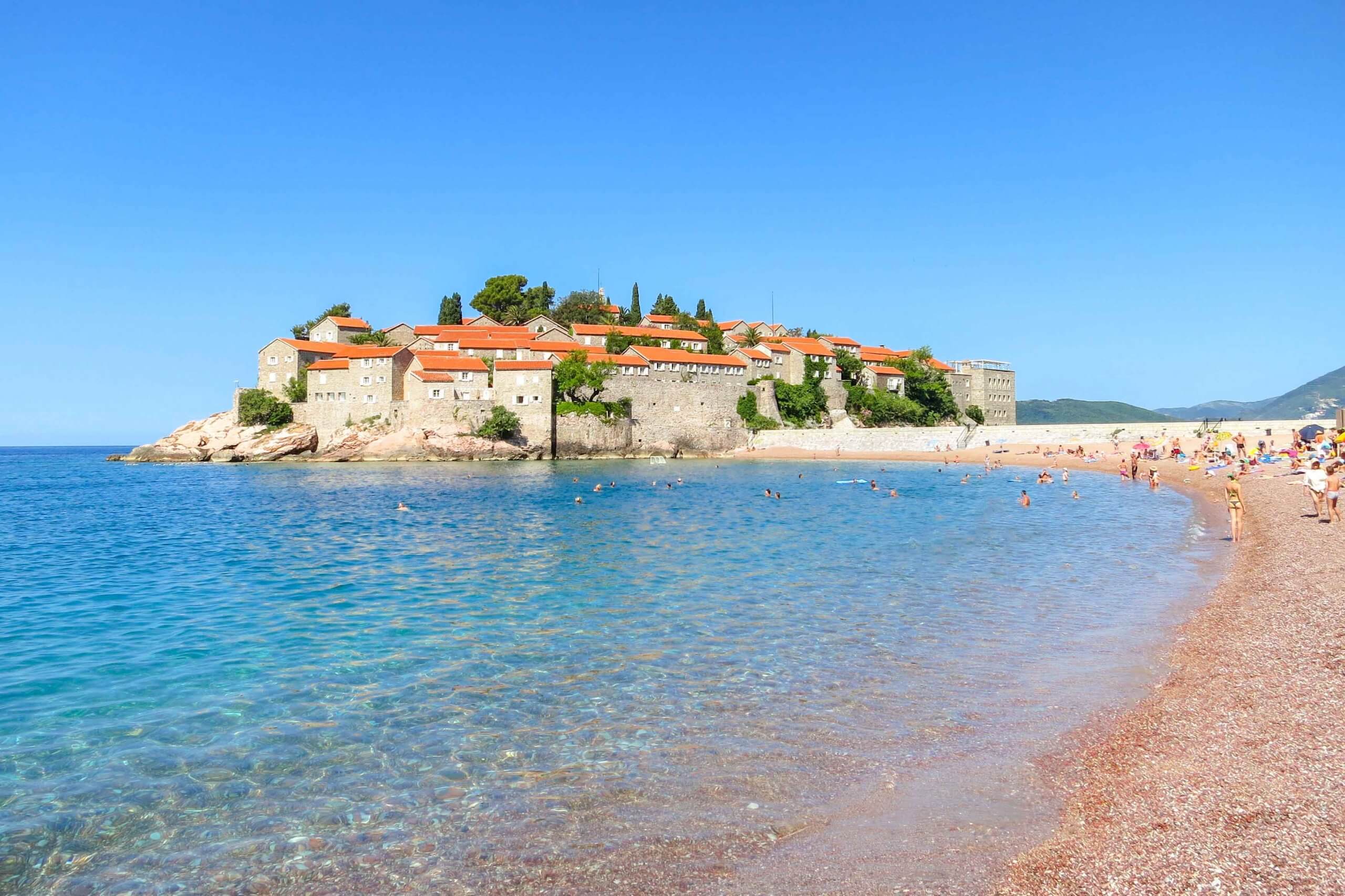 Ein Besuch von Sveti Stefan lohnt sich! Diese Insel zählt zu den besten Sehenswürdigkeiten in Montenegro, und einmal am Traumstrand zu baden, ist ein wahres Erlebnis.
