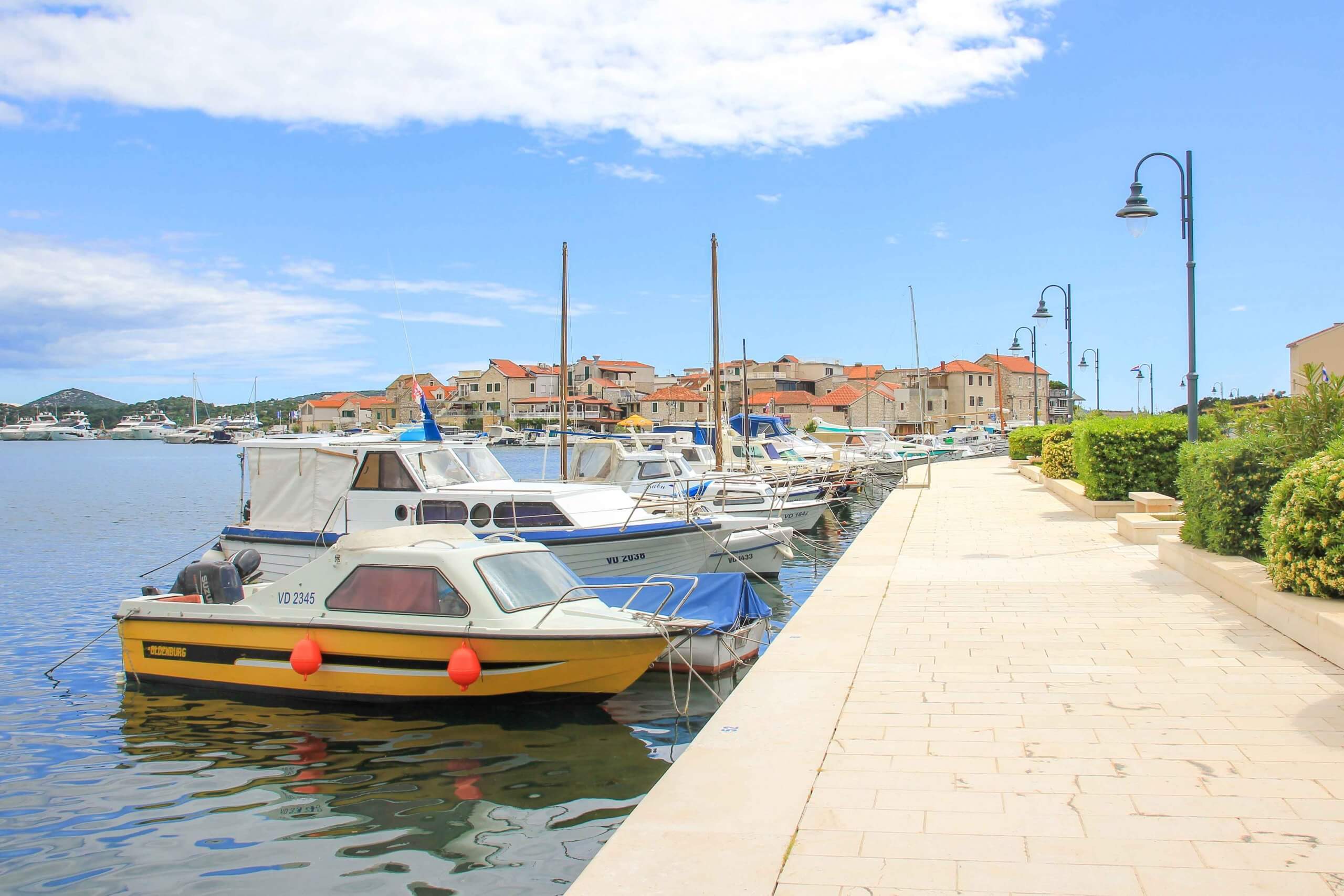 Die charmante Marina Tribunj liegt wunderschön mit direktem Blick auf die Altstadtinsel. Sie verfügt über 250 Schiffsanlegestellen im Meer und 150 Plätze auf dem Land. Dieser Hafen wurde sogar mit der „Blauen Flagge“ ausgezeichnete und zählt obendrein zu den schönsten in Kroatien. Dank der optimalen Lage ist Tribunj ein beliebter Ausgangsort für Segeltörns und auch für Bootsausflüge in die vorgelagerte Inselwelt. Highlights wie der nahe gelegene Nationalpark Kornaten, der Naturpark Telascica auf Dugi Otok und der Nationalpark Krka können von hier aus mit dem Boot gut erreicht werden.