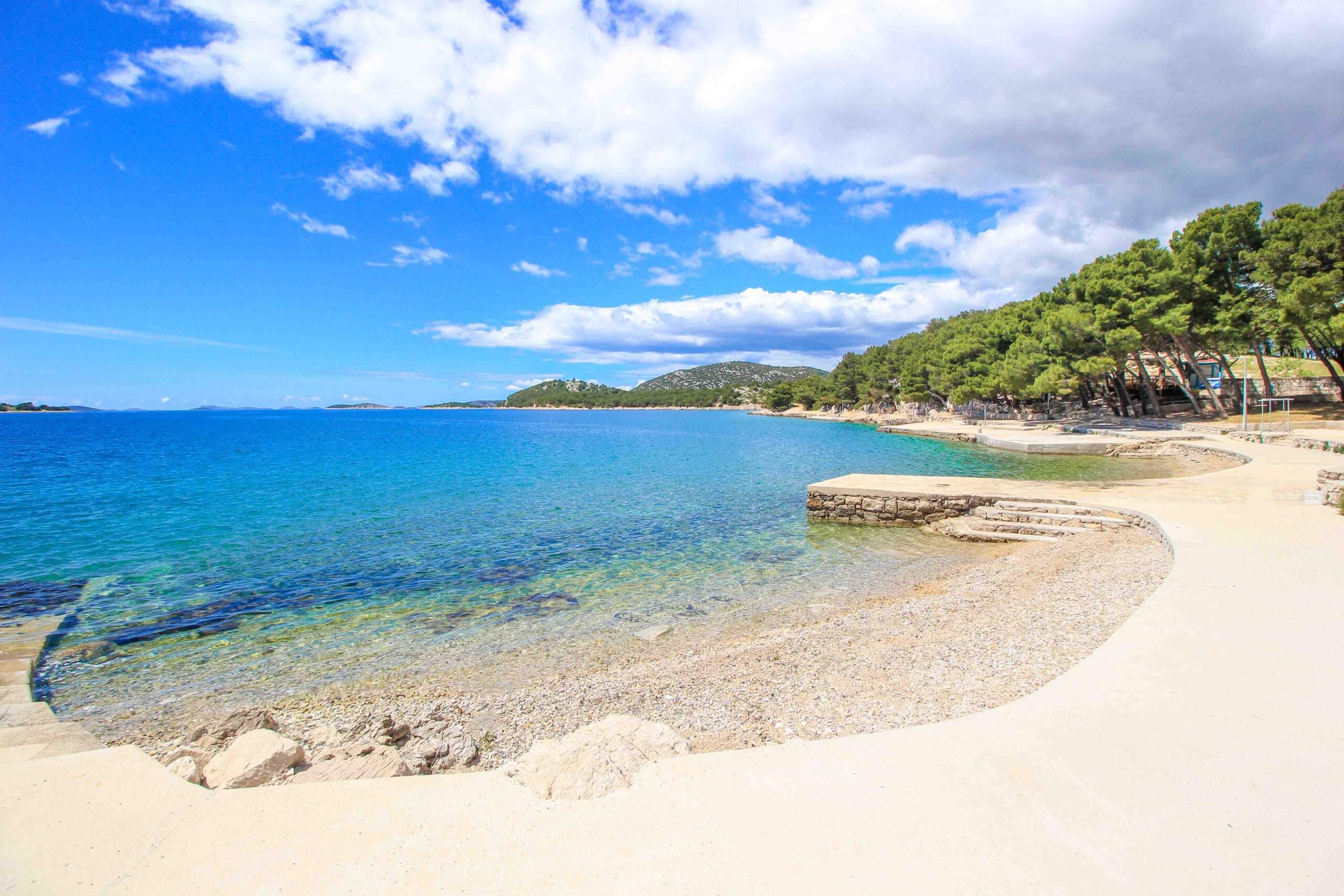 Im Norden von Tribunj liegt der beliebte Strand Plaza Zamalin. Hier am Hauptstrand erwartet dich eine von Pinienbäumen umgebene Traumbucht mit glasklarem Meer in malerischer Kulisse. Dieser Strand ist ein Mix aus Kiesel-, Beton- und Steinstrand, und es gibt sogar einen Eingangsbereich für gehbeeinträchtigte Menschen. Fabelhaft sind auch die großen Bäume, die im Sommer kühlen Schatten spenden. Für Verpflegung sorgen hier ein paar kleine Beach-Bars, eine gute Pizzeria sowie eine hübsche Konoba.