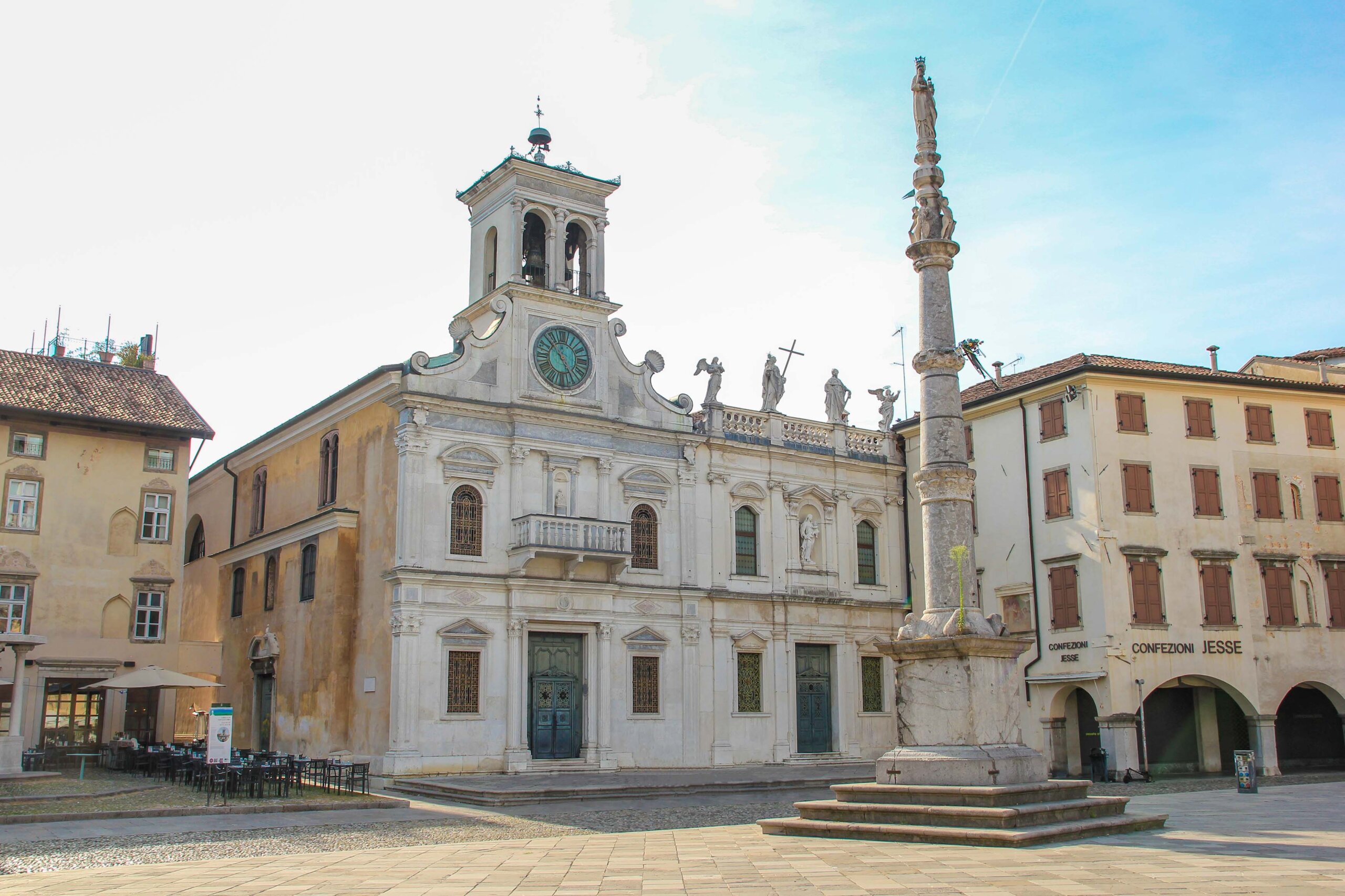Eine der schönsten Kirchen in Udine ist die Chiesa di San Giacomo. Sie befindet sich direkt an der malerischen Piazza Giacomo Matteotti, neben einem Brunnen aus dem Mittelalter, und wurde bereits im Jahr 1378 erbaut. Ihr heutiges Aussehen geht jedoch ins Jahr 1525 zurück, als die Fassade von Bernardino da Morcote neu gestaltet wurde. Eine Besonderheit ist die Uhr, die von einem Glockenturm mit einem Doppelbogenfenster überragt wird. Schon von außen ein wahrer Hingucker, ist auch das barocke Innere dieser Attraktion absolut sehenswert! Hier staunt man über wunderschöne Decken, prachtvolle Fresken und wertvolle Altäre.