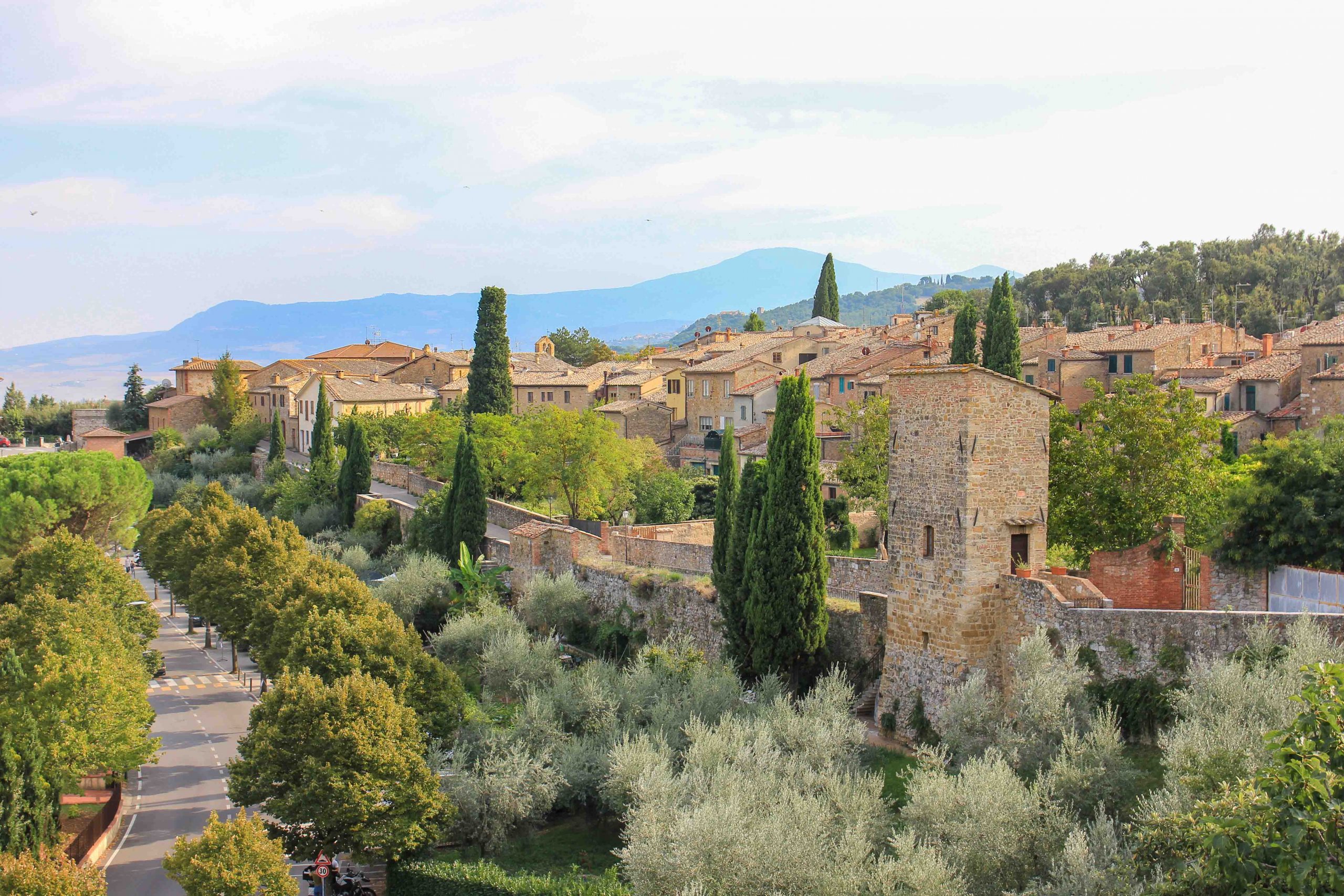 Ein richtig hübscher Ort im Orcia-Tal ist San Quirico d’Orcia. Das kleine Städtchen hat uns überascht und ist insbesondere wegen der vielen mittelalterlichen Gebäude, der hübschen Gässchen und der imposanten Stadtmauer mit den vielen Türmchen einen Besuch wert. Sehenswert sind außerdem die Kirche Collegiata Santi Quirico e Giulitta aus dem 12. Jahrhundert, die ursprünglich im romanischen Stil errichtet wurde, und der malerische Hauptplatz Piazza della Liberta mit der Kirche Chiesa di San Francesco.
