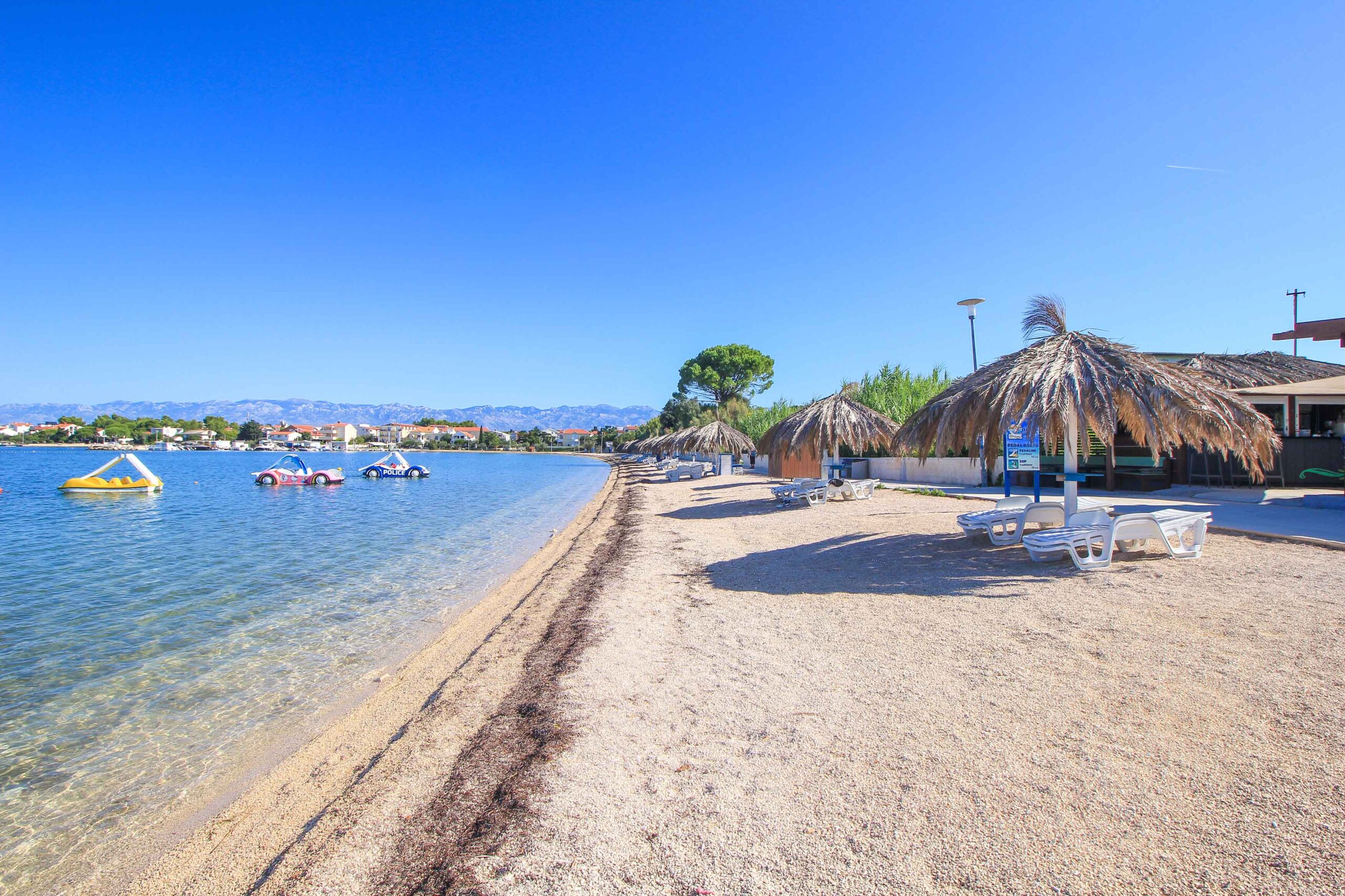 Ein Highlight für Familien mit Kindern ist der Strand Prodorica, ein bezaubernder Sandstrand, welcher sich zwischen Vrsi und Nin befindet. Urlauber lieben das wunderschöne Urlaubsflair, die traumhaften Wasserfarben und die tolle Lokation. Der Strand ist obendrein sehr flach abfallend und daher auch ausgezeichnet für Kinder und für Nichtschwimmer geeignet. In den Sommermonaten gibt es sogar eine Hüpfburg im Meer, die für die nötige Action sorgt. Auch die touristische Ausstattung mit Duschen, Umkleidemöglichkeiten, Sonnenschirmen und der kleinen Beach-Bar ist super.