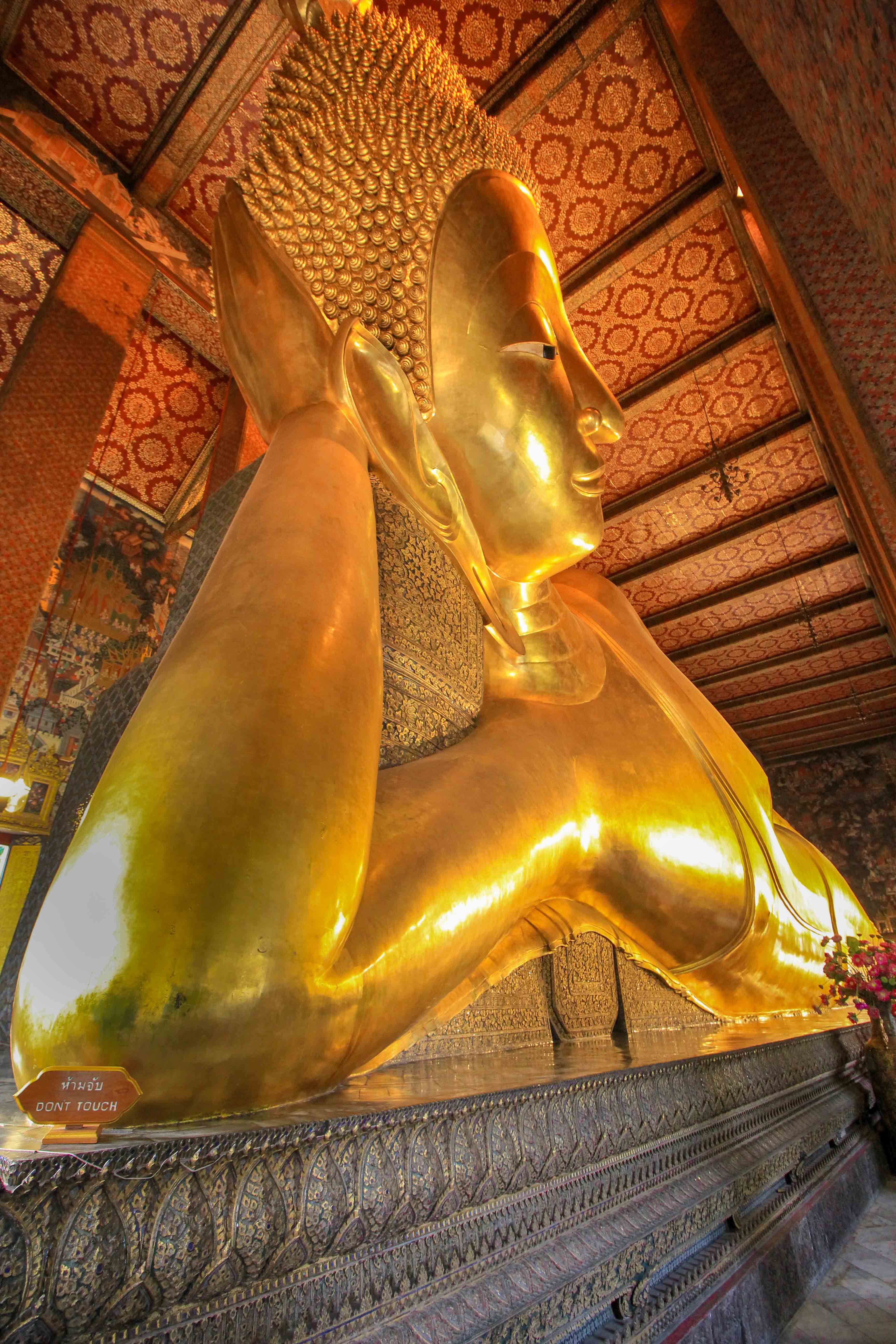 Die Hauptsehenswürdigkeit des Wat Pho ist der liegende Buddha, der Phra Buddha Saiyas. Diese rund 46 Meter lange und 15 Meter hohe vergoldete Buddha Statue bringt so manchen Besucher zum Staunen. Der liegende Buddha ist der Größte seiner Art in Bangkok und der 3. Größte in Thailand. Die liegende Position symbolisiert das Eintreten Buddhas ins Nirvana, das Ende aller Wiedergeburten. Der liegende Buddha besteht im Kern aus Ziegelsteinen, welche mit Gips überzogen wurden. Anschließend kam erst die Vergoldung hinzu.