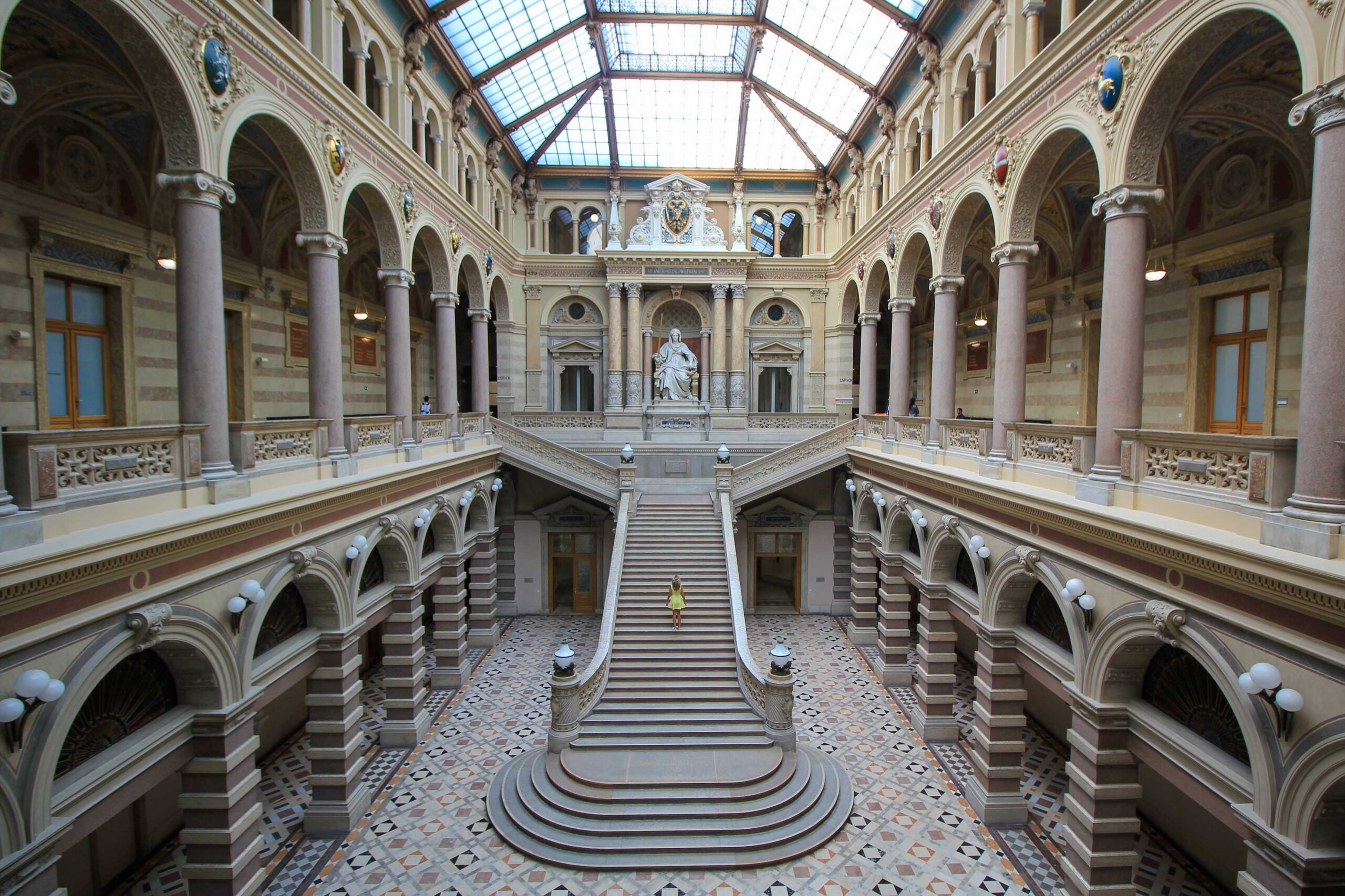 Der Justizpalast gehört definitiv zu den bestgehüteten Geheimtipps in Wien. Dieses prachtvolle Gebäude wurde bereits zwischen 1875 und 1881 erbaut, und beherbergt heute den Obersten Gerichtshof. Nur die wenigsten wissen, dass man diese Sehenswürdigkeit sogar gratis von innen besichtigen kann. Besonders interessant ist die wunderschöne, monumentale Aula, die mit der prächtigen Marmortreppe, den Säulen und einer Statue der Justitia ein grandioses Motiv für Bilder abgibt. Ein echter Insidertipp für Kenner ist aber auch das Justiz-Café im Dachgeschoss, das einen der besten Panoramablicke über Wien gänzlich kostenlos bietet!