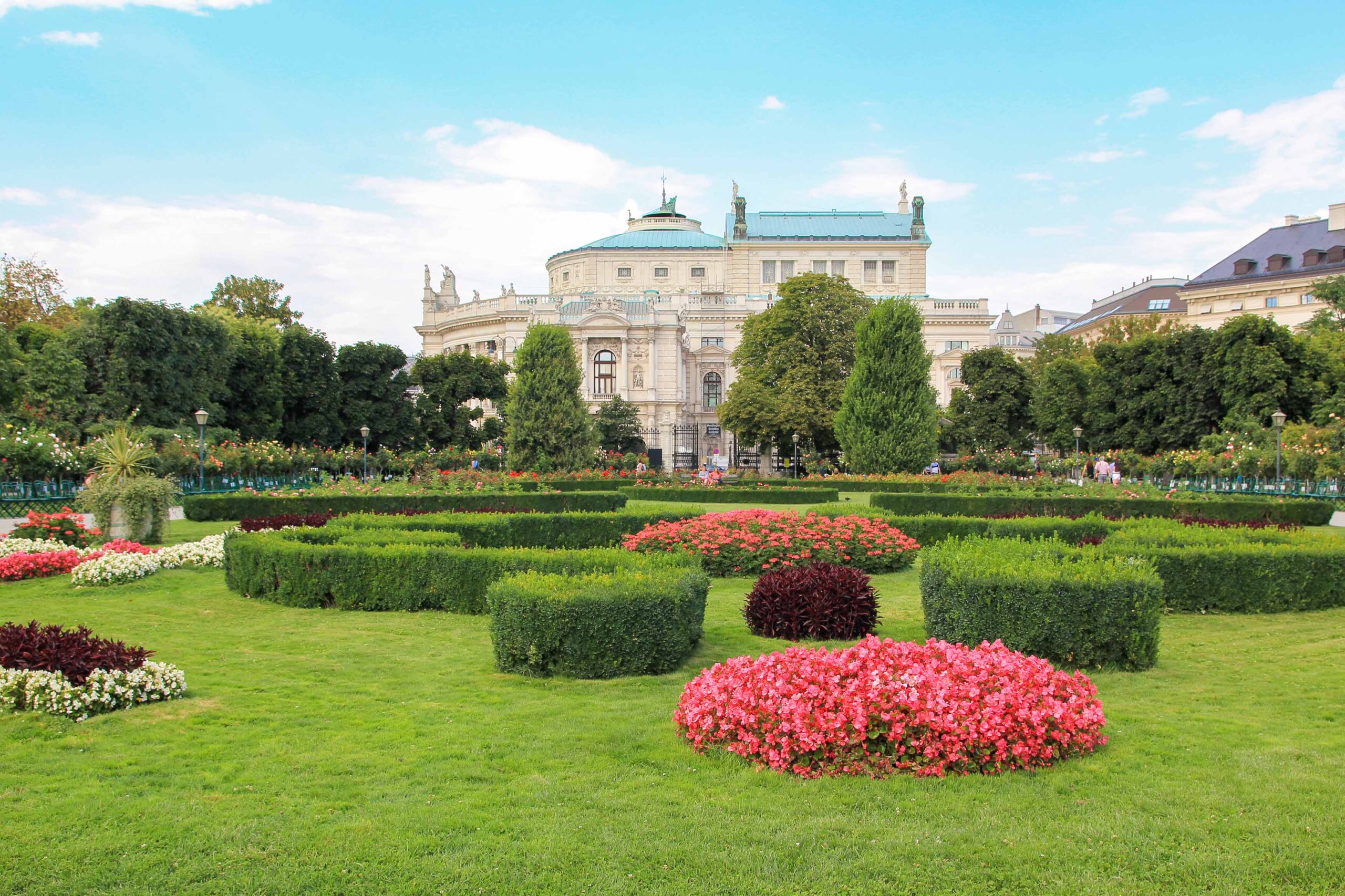 Ein wahres Schmuckstück ist der Volksgarten in Wien, eine öffentliche Parkanlage, die sich im 1. Wiener Gemeindebezirk befindet, und die sich über 5 Hektar entlang der Ringstraße erstreckt. Er wurde 1823 eröffnet und war der erste frei zugängliche Park Wiens. Ursprünglich als Privatgarten für Erzherzöge geplant, ist er auf Vorschlag der Hofgartenverwaltung von Kaiser Franz I. für die Öffentlichkeit zugänglich gemacht worden. Eine Besonderheit ist der wunderschöne Rosengarten mit über 3.000 Rosensträuchern, in dem sich mehr als 200 Rosensorten befinden. Sehenswert sind außerdem die zahlreichen Denkmäler, der Theseustempel, das Cortische Kaffeehaus, das Café Meierei und der Milchpavillon sowie die prachtvollen Bauwerke der Ringstraße, die den Volksgarten umgeben.