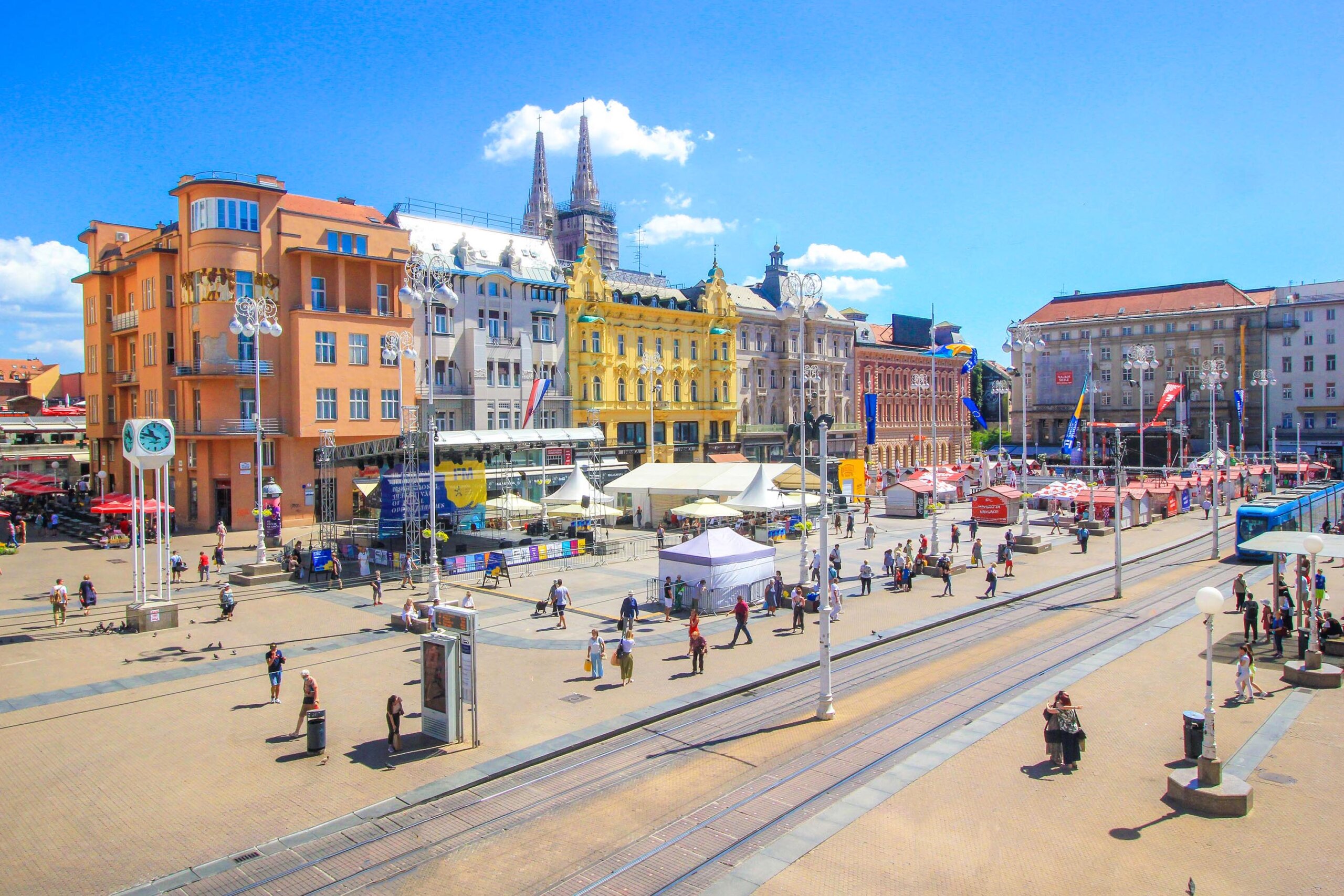 Das Herzstück der Stadt und zugleich der beliebteste Treffpunkt ist der Hauptplatz Ban Jelačić. Dieser Platz befindet sich in der Zagreber Unterstadt und wurde bereits im 17. Jahrhundert gegründet. Heute bestaunt man ein charmantes Ensemble aus prachtvollen Bauwerken der verschiedensten Epochen. Das älteste, noch vorhandene Gebäude (Haus Nr. 18) stammt sogar noch aus dem Jahr 1827. Interessant ist zudem auch die große Reiterstatue Ban Josip Jelačić in der Platzmitte. Hier ist immer etwas los! Im Sommer finden Konzerte sowie verschiedene Events statt, und im Winter wird der schöne Weihnachtsmarkt von Zagreb eröffnet.