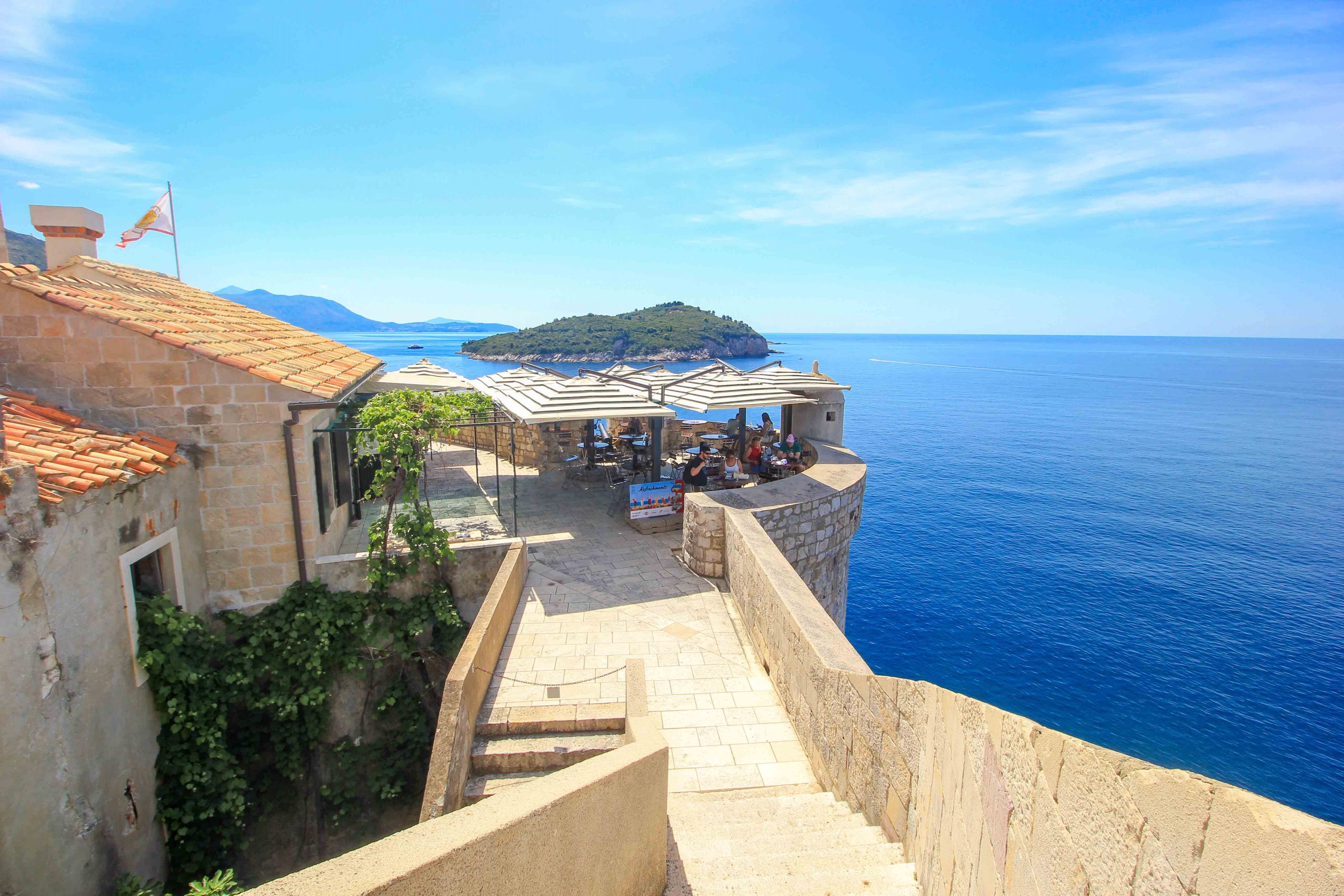 When walking along the wall, one can always enjoy a magnificent view over the coast. A real highlight is the viewpoint of the imposing fortress Lovrijenac, which is enthroned on a 37-meter-high rock above the coast.
