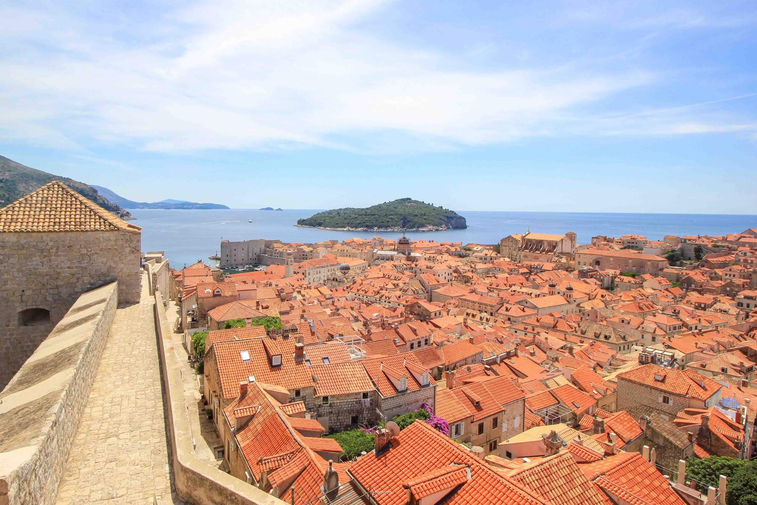 At the end of the Dubrovnik Wall walk is the Minceta Fortress. It is one of the most famous viewpoints of the wall because from here you can experience the most spectacular view over the brown-red roofs of the city; all the way to the small island Lokrum in the distance.