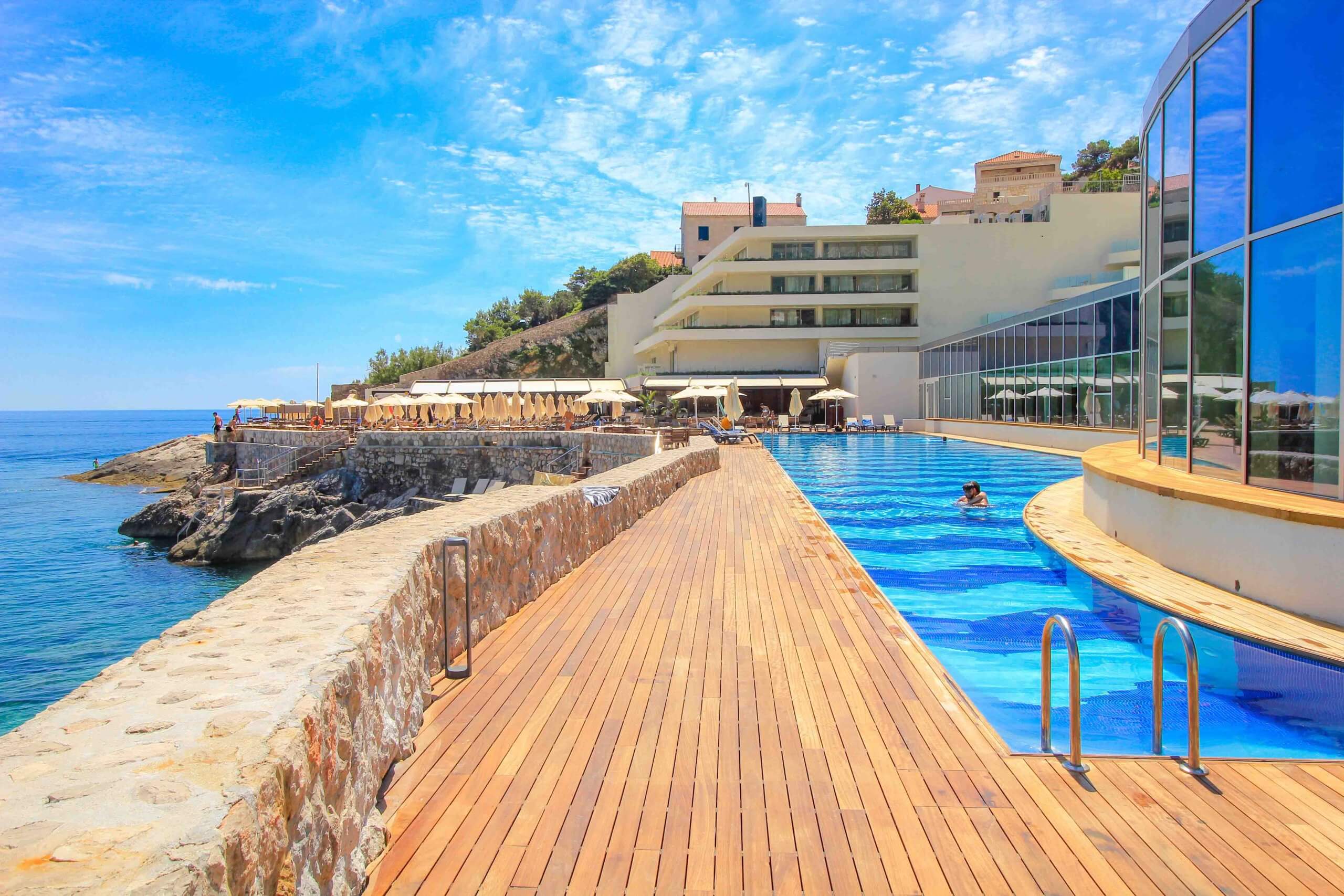 The two small pools on the upper floors of the hotel, which overlook the gorgeous Lapad Bay, are ingenious. A real highlight, however, is the Cave Bar More, a natural cave that was discovered during the construction of the hotel and now serves as a stylish cave bar.