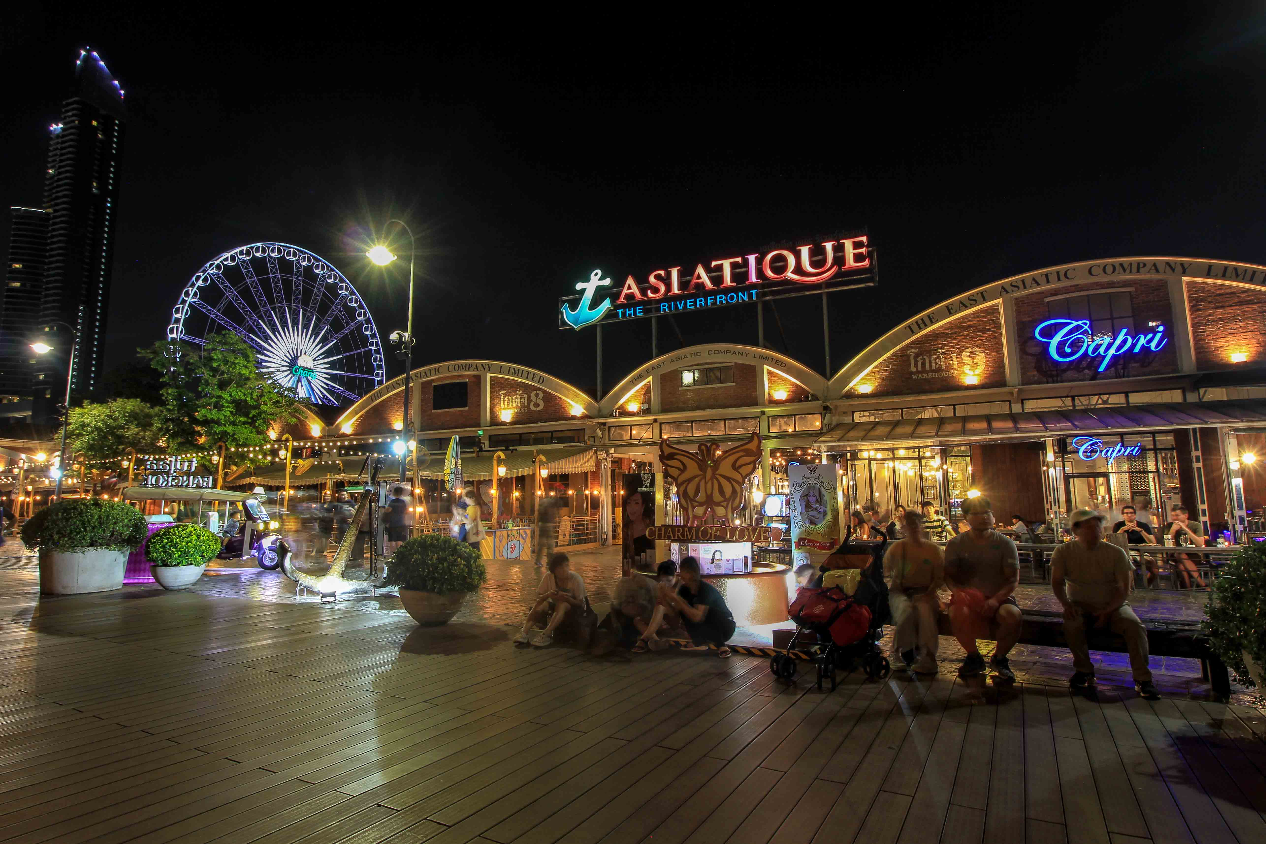 Le marché nocturne Asiatique the Riverfront est l’une des nouvelles attractions de Bangkok. Avec sa grande roue blanche distinctive et son emplacement romantique sur la rivière Chao Phraya, ce marché est une destination populaire pour les touristes et les habitants. Il y a d’innombrables magasins, de très bons restaurants mais aussi des spectacles de caberet, des boîtes thaïlandaises et un petit parc d’attractions.