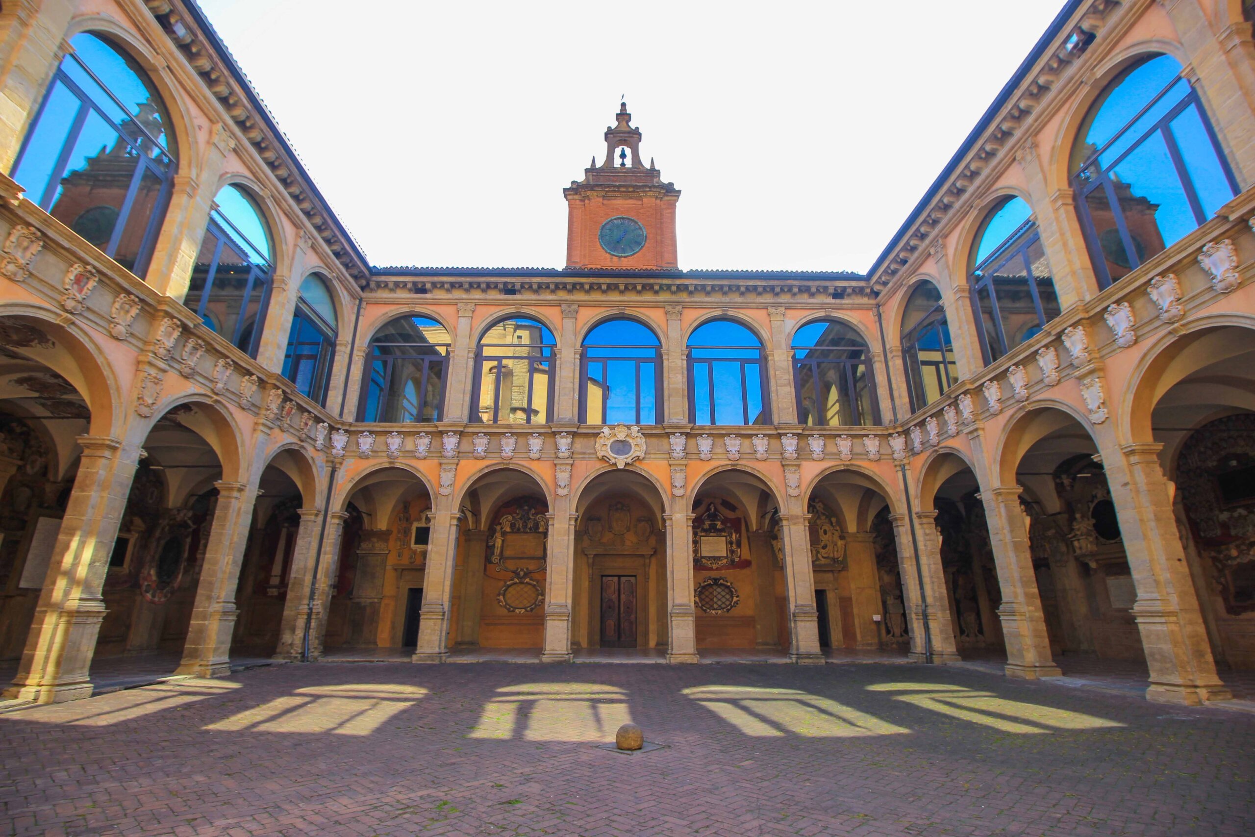 Le Palazzo dell’Archiginnasio a été construit au 16ᵉ siècle et servait à l’origine de siège à l’Université de Bologne, l’une des plus anciennes universités du monde. Aujourd’hui, ce remarquable bâtiment historique est l’une des principales attractions touristiques de Bologne, et une visite ne peut manquer lors d’un tour de ville. On y découvre avec étonnement les précieuses peintures murales, les armoiries et les décorations historiques. L’impressionnant théâtre anatomique, appelé « Teatro Anatomico« , entièrement recouvert de bois de sapin et pouvant accueillir environ 300 personnes, est absolument intéressant. La « Biblioteca Comunale dell’Archiginnasio » et son impressionnante salle de lecture, dont l’histoire remonte à 1801, valent également le détour.