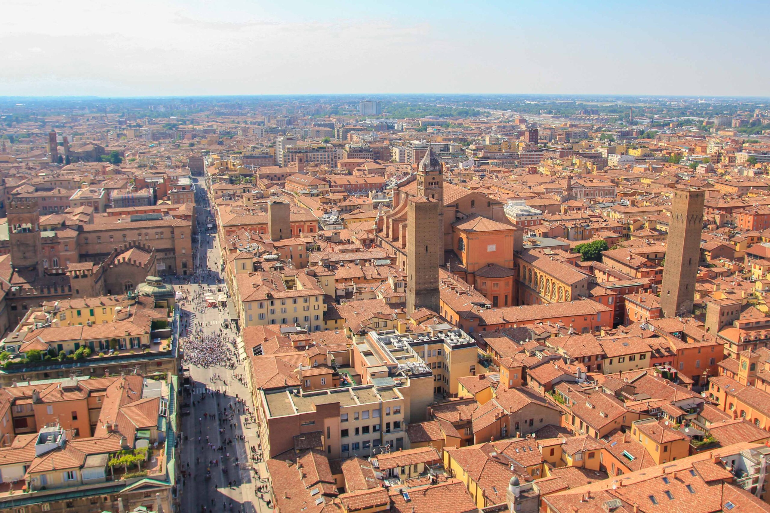 La ville de Bologne, qui compte 388 000 habitants, est située dans la région d’Émilie-Romagne, au nord de l’Italie, à environ 60 kilomètres de la mer, 100 kilomètres de Florence et 156 kilomètres de Vérone. Chaque année, d’innombrables touristes du monde entier visitent la métropole italienne pour admirer sa riche histoire et sa beauté architecturale. Le point fort de Bologne est sa magnifique vieille ville rouge, également connue sous le nom de « La rossa », qui séduit par ses monuments à couper le souffle, ses musées et ses sites historiques. Bologne est aussi connue comme ville universitaire, car c’est ici que se trouve la plus ancienne université d’Europe, fondée dès 1088. Les arcades typiques, inscrites au patrimoine mondial de l’UNESCO et qui s’étendent sur une longueur incroyable de 38 kilomètres à travers la ville, valent également la peine d’être vues.