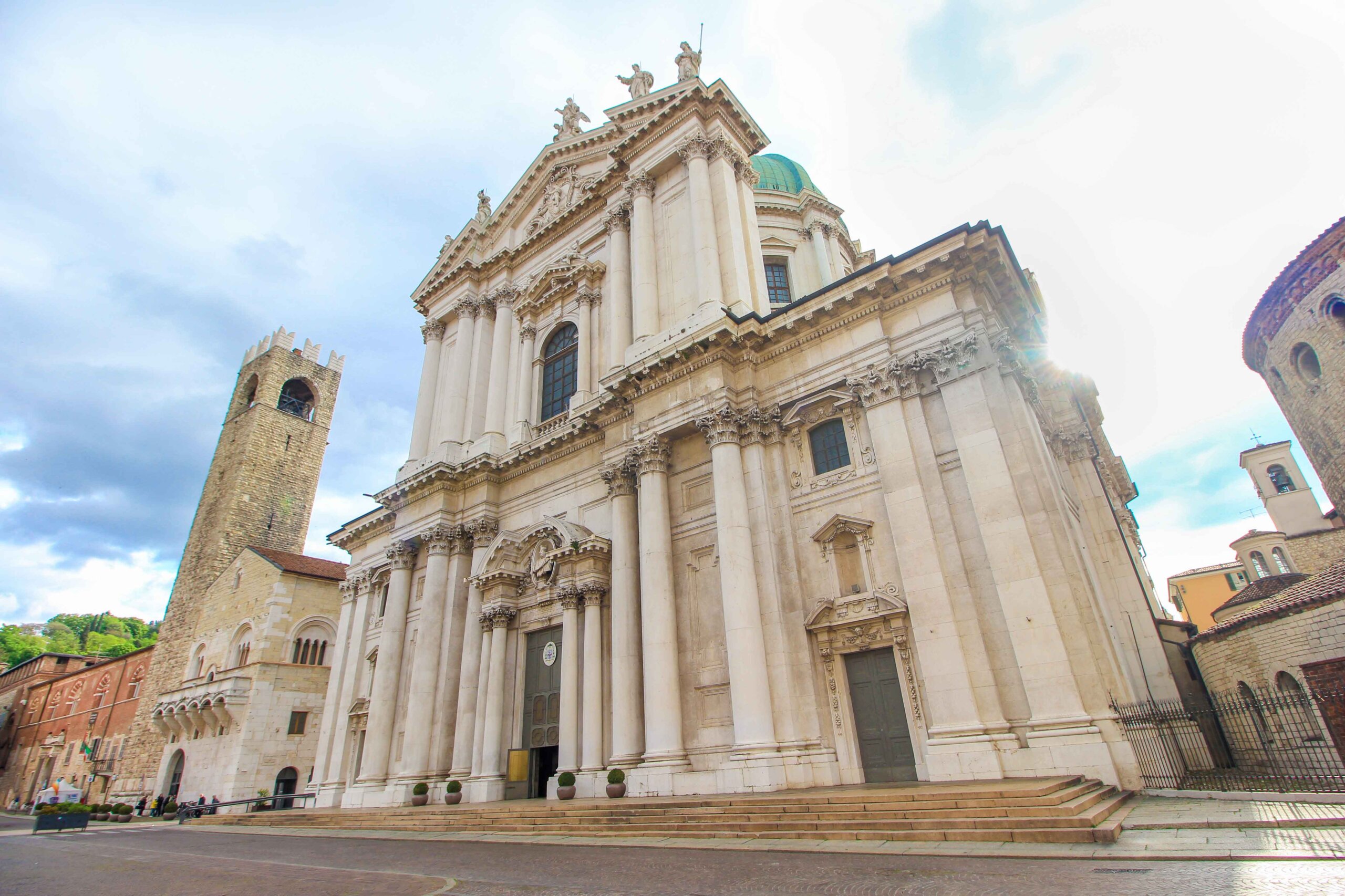 La Nouvelle Cathédrale, également connue sous le nom de cathédrale d’été de Santa Maria Assunta, est l’église principale de Brescia et l’une des plus belles attractions de la vieille ville. Cette imposante église blanche en marbre de Botticino se trouve sur la Piazza Paolo VI, juste à côté de la Vieille Cathédrale, et fut autrefois construite sur les murs d’une basilique paléochrétienne du Ve siècle. La construction de la nouvelle cathédrale a duré environ 220 ans, de 1604 à 1825, et l’on peut ainsi admirer différents styles architecturaux, dont la Renaissance, le baroque et le néoclassicisme. L’intérieur de la cathédrale, avec sa magnifique coupole, vaut absolument la peine d’être vu. Les huit chapelles latérales abritent de nombreuses œuvres d’art de grande valeur.
