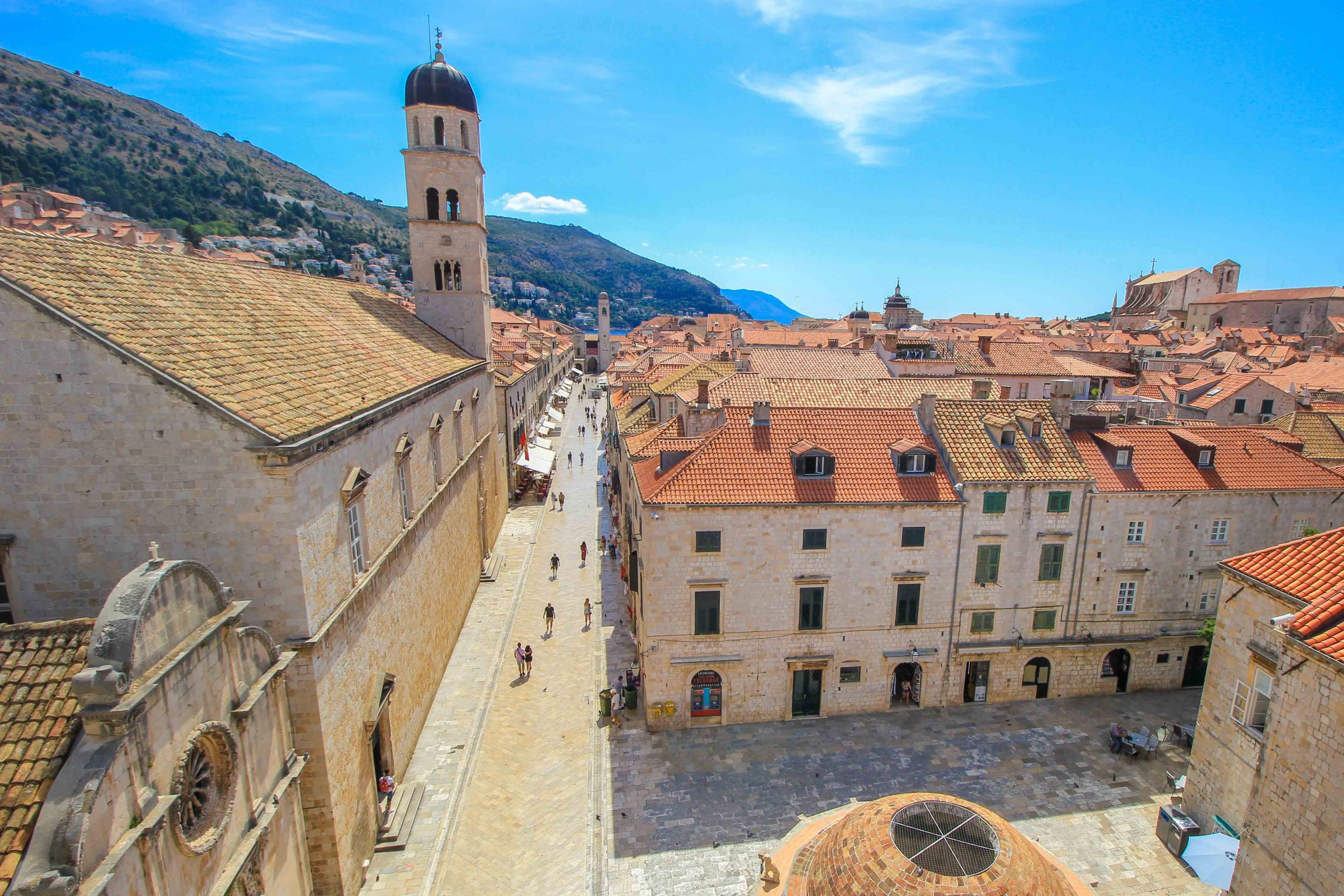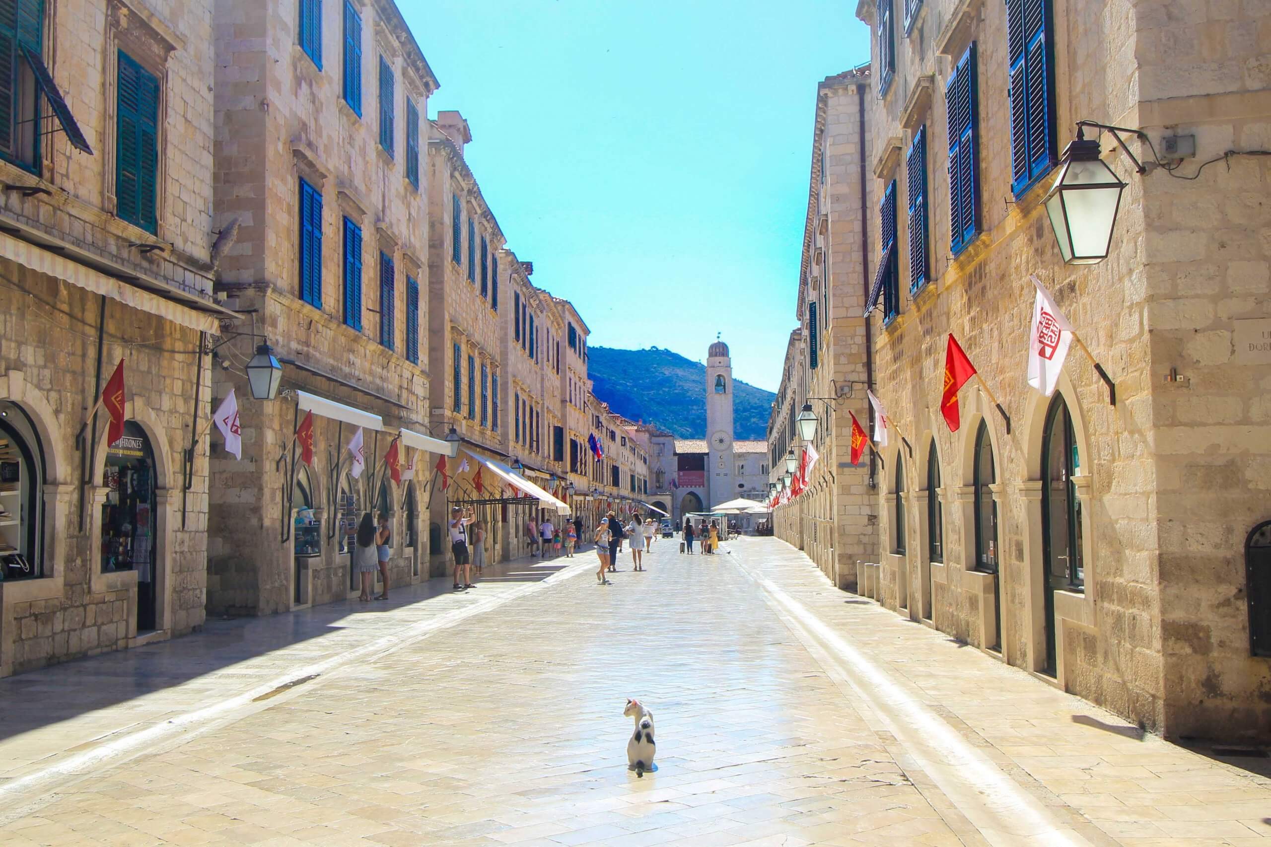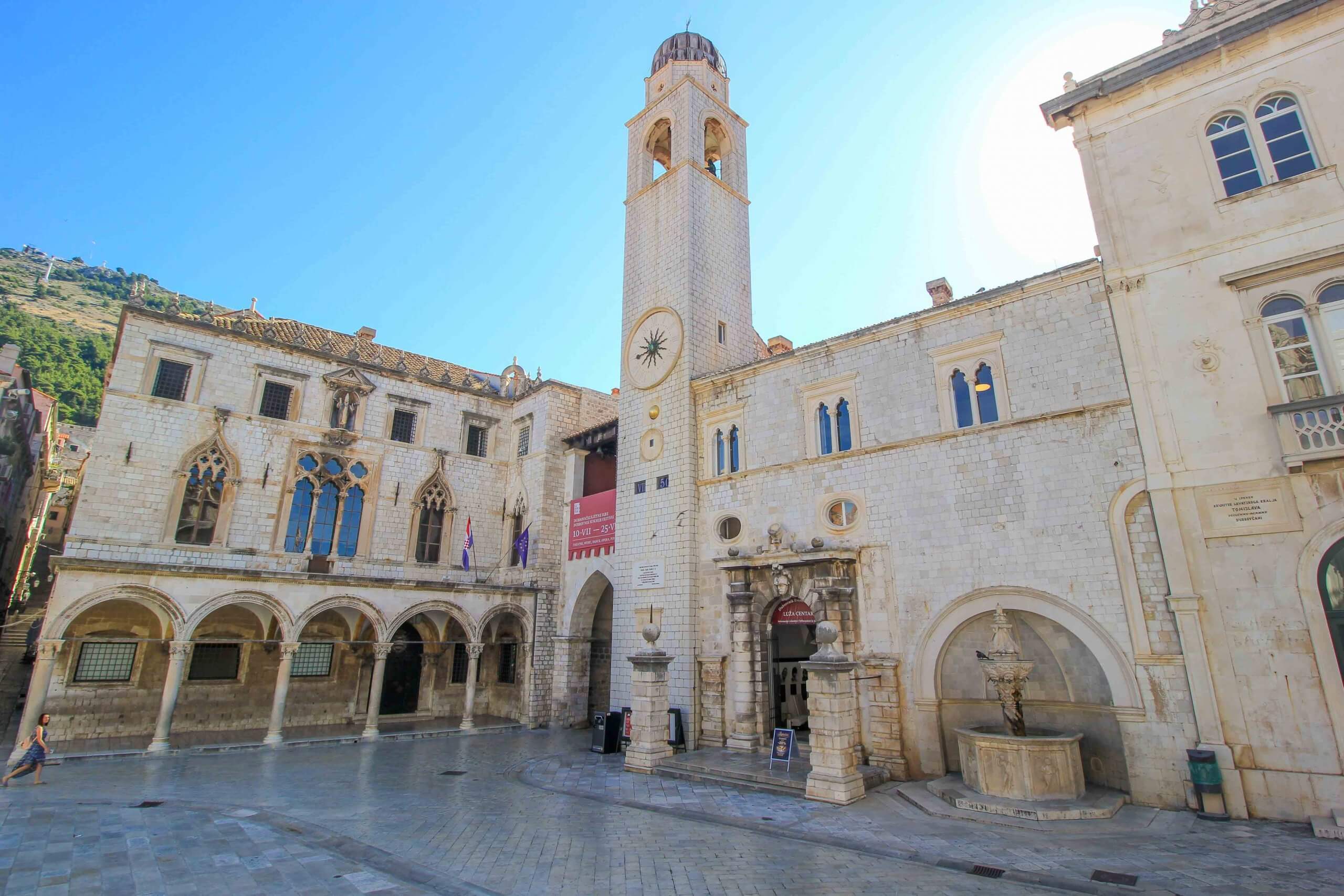 La fontaine d’Onofrio, datant du 14ᵉ siècle, située au début de la promenade, ainsi que la statue d’Orlando, le palais de Sponza, l’église de Saint-Blaise et le clocher au bout de la rue valent vraiment le détour.