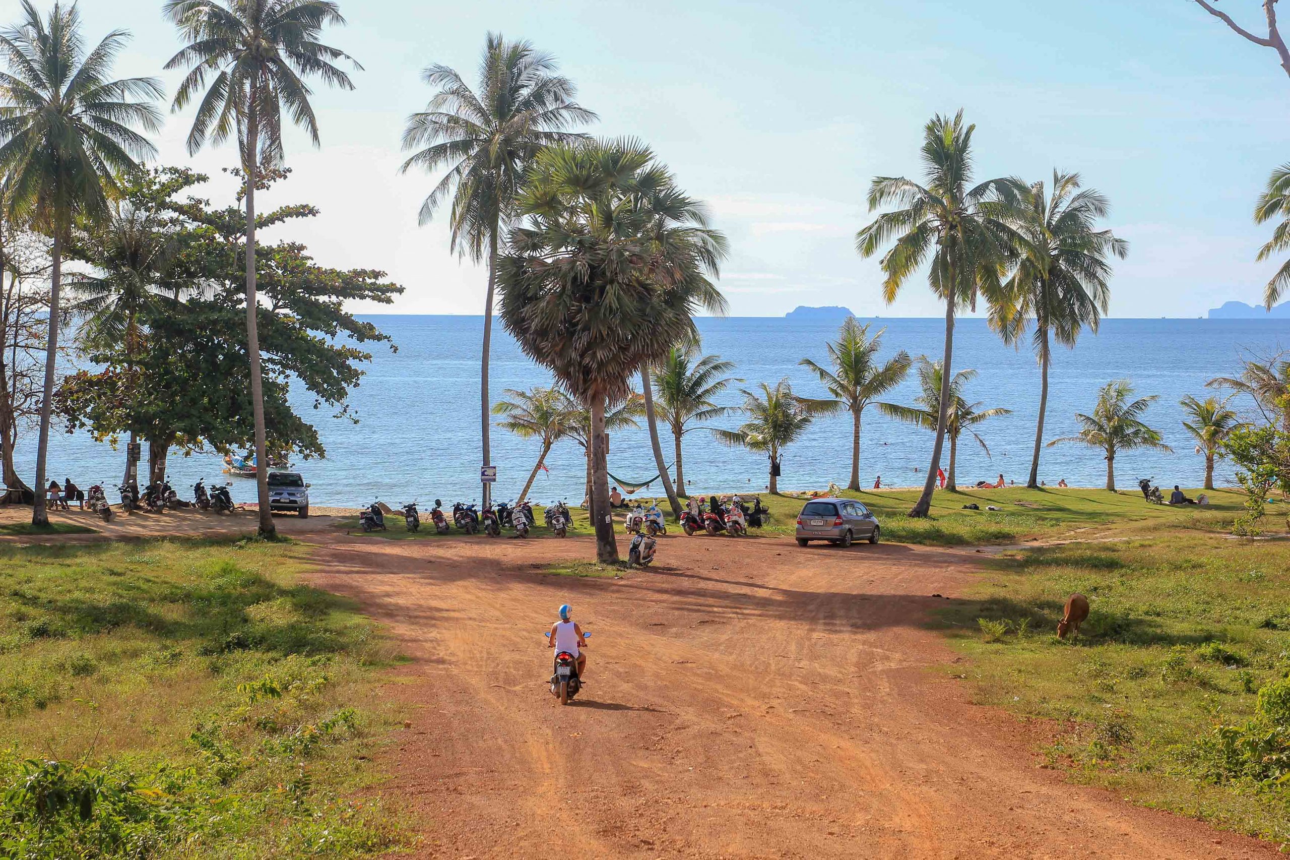Un scooter pour une journée coûte actuellement environ 250 bahts sur Koh Lanta. Si tu cherches de l’essence, cherche les panneaux Gasoline et les bouteilles orange qui sont vendues au bord de la route.