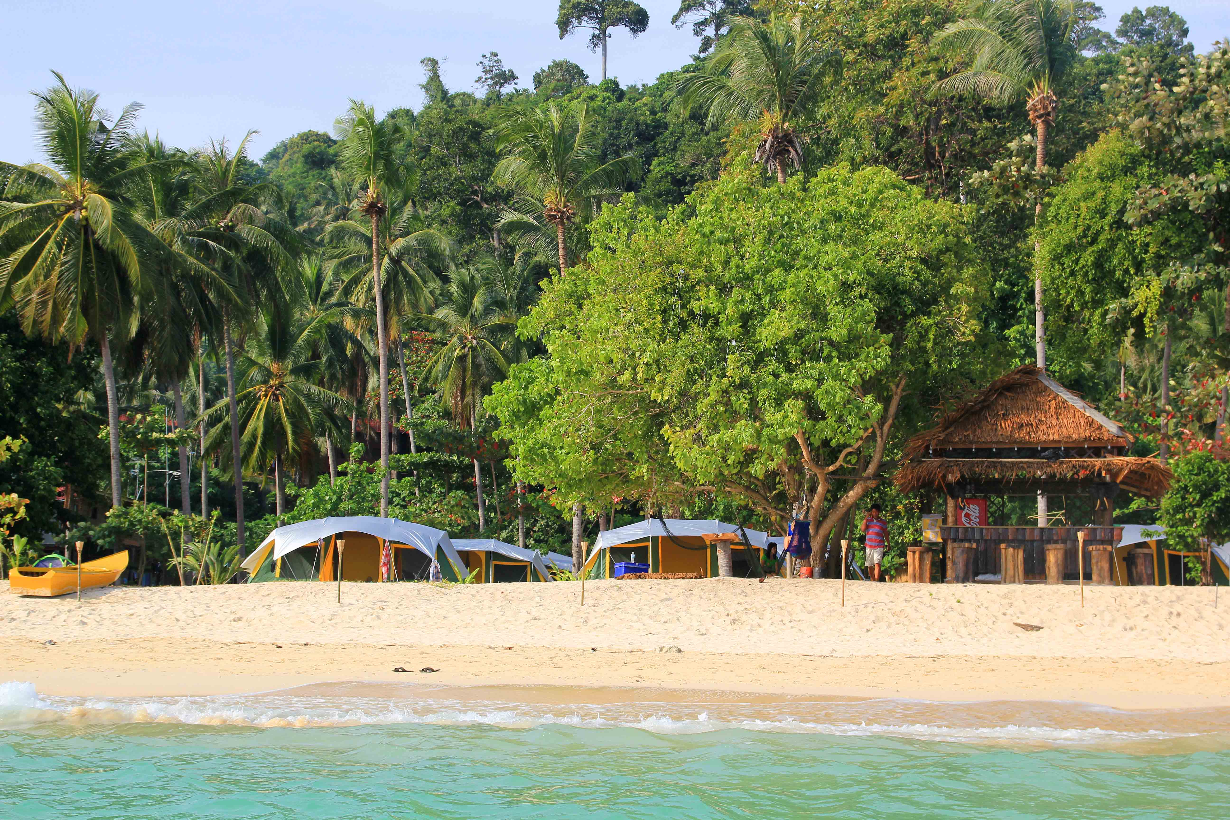 Il y a une petite sélection de cabines de plage et d’hôtels dans toutes les catégories de prix sur l’île. En général, on peut dire que les hébergements à Koh Ngai sont un peu chers que sur les autres îles. Il y a une poignée de belles stations balnéaires sur l’île, mais si vous cherchez des options moins chères, nous pouvons vous recommander le Camping Restaurant. Nous avons passé un très bon séjour là-bas. Le camping est très simple, mais les tentes sont propres et les lits sont confortables. La douche a lieu à l’extérieur et l’électricité n’est disponible que pendant la journée.
