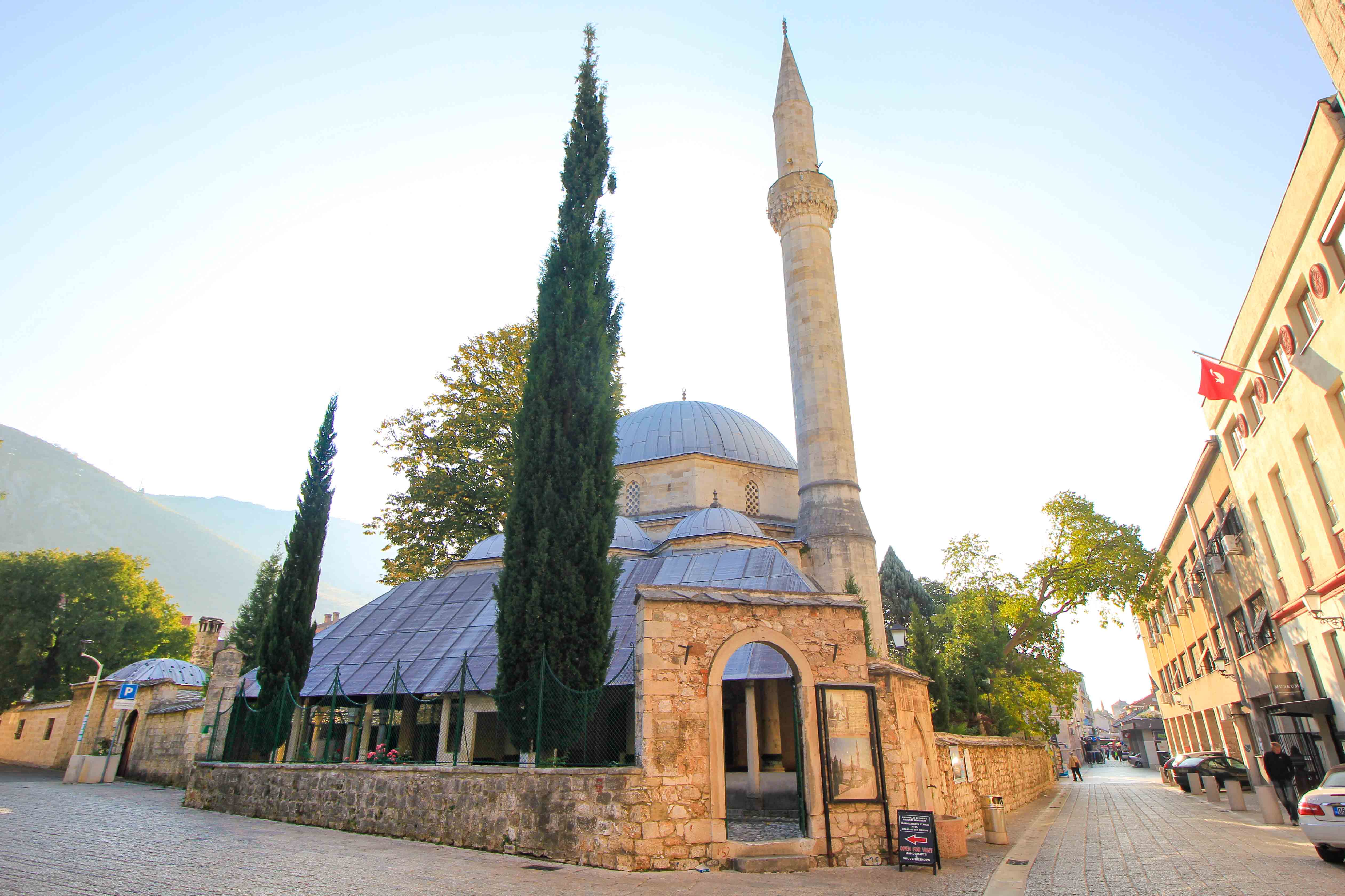 Astuce : si vous en avez envie, montez le minaret de la mosquée via un escalier en colimaçon assez raide et étroit et profitez de la vue de Mostar et du célèbre pont depuis ce qui est probablement le plus beau point de vue de la ville.