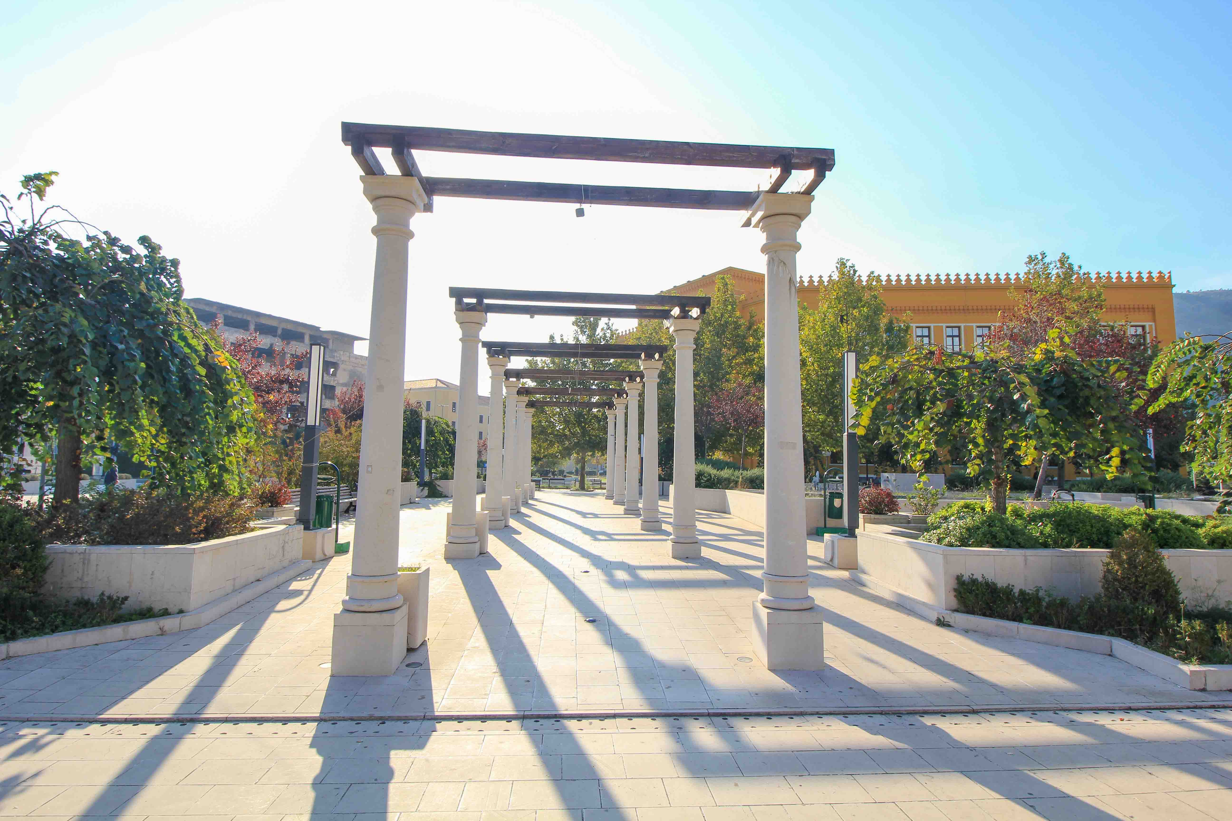 La place espagnole se trouve du côté ouest de Mostar. Cette petite place a été construite pour commémorer les soldats espagnols morts pendant la guerre. Le parc de la ville verte est juste derrière la place. À côté se trouve le magnifique lycée, le United World College, qui permet aux enfants croates, bosniaques et serbes d’aller à l’école ensemble.