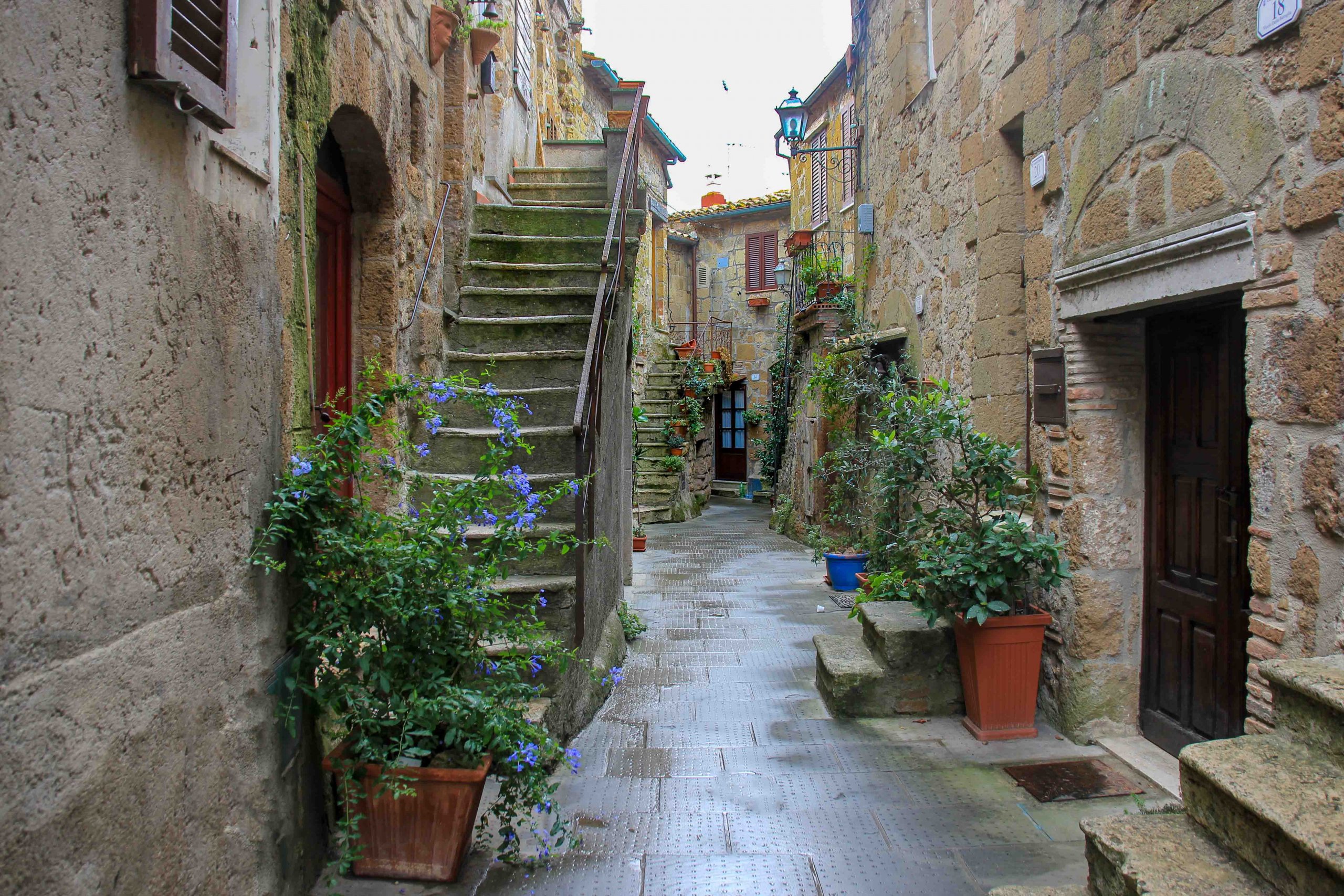 La vieille ville piétonne de Pitigliano est sillonnée par 3 ruelles, la Via Roma centrale, la Via Vignoli au milieu et la Via Zuccarelli au sud. En se promenant dans ces ruelles médiévales, on fait une sorte de voyage dans le temps, le mieux est de se laisser porter et de découvrir de nombreuses beautés et curiosités. Les maisons en pierre très anciennes, construites avec le tuf rouge de la région, sont particulièrement pittoresques, tout comme les nombreuses plantes et fleurs qui décorent les ruelles.