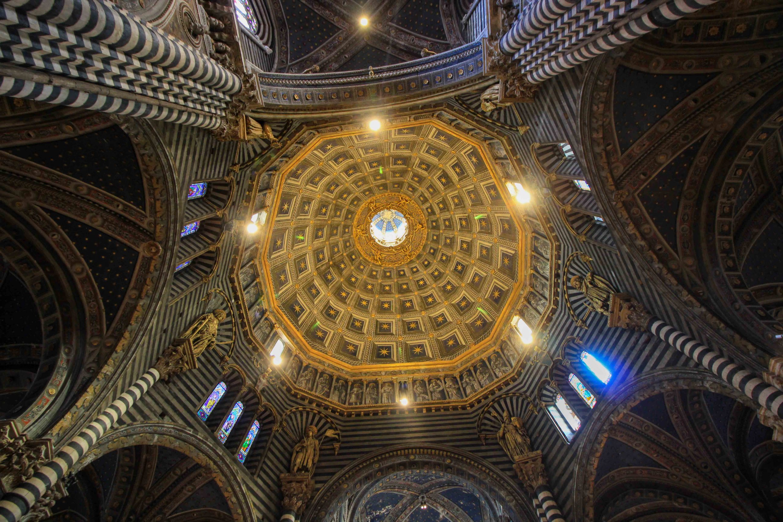 Vous devriez prévoir du temps pour une visite, car il y a d’innombrables trésors artistiques à admirer. Duccio di Buoninsegna, Nicola Pisano, Donatello, Pinturicchio, Beccafumi, Michelangelo et Bernini ne sont que quelques-uns des artistes qui se sont immortalisés ici. Le sol de cette cathédrale est également intéressant, sur lequel 56 tablettes de marbre représentent des scènes de l’Ancien Testament.
