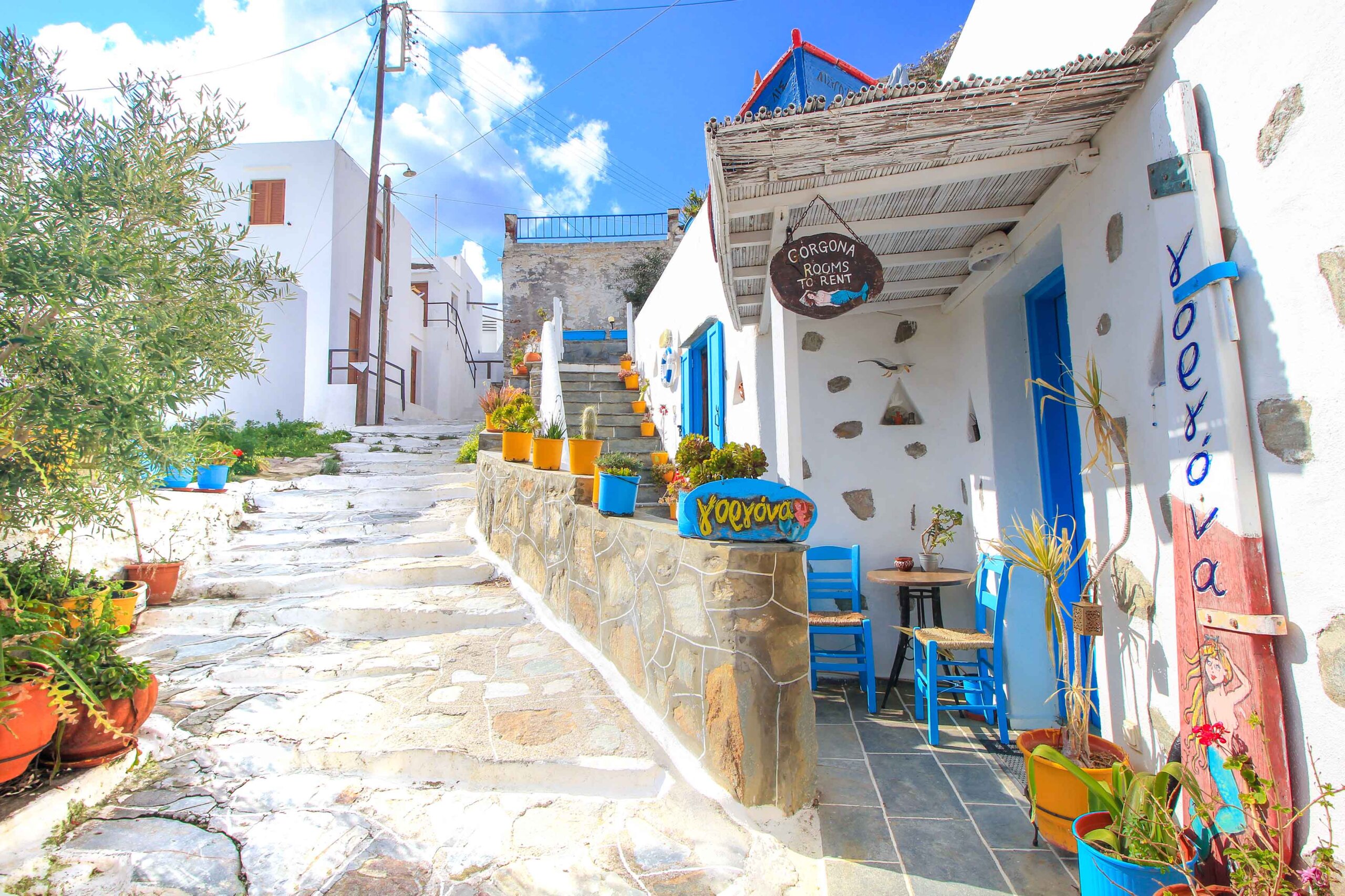 Le village d’Artemonas est un petit bijou de l’île de Sifnos. Il se trouve à seulement 1 km de la capitale d’Apollonia, également accessible à pied par un sentier pavé pittoresque. Sur le chemin, vous pourrez profiter d’une vue magnifique sur les maisons nobles, vous émerveiller devant l’imposante église Saint-Jean et profiter du calme qui entoure cette petite ville. Artemonas est construit au sommet d’une colline et possède deux jolis moulins à vent au sommet. Un autre conseil d’initié est une visite à la boulangerie du village dans le centre, qui propose des pâtisseries traditionnelles et des biscuits très savoureux.