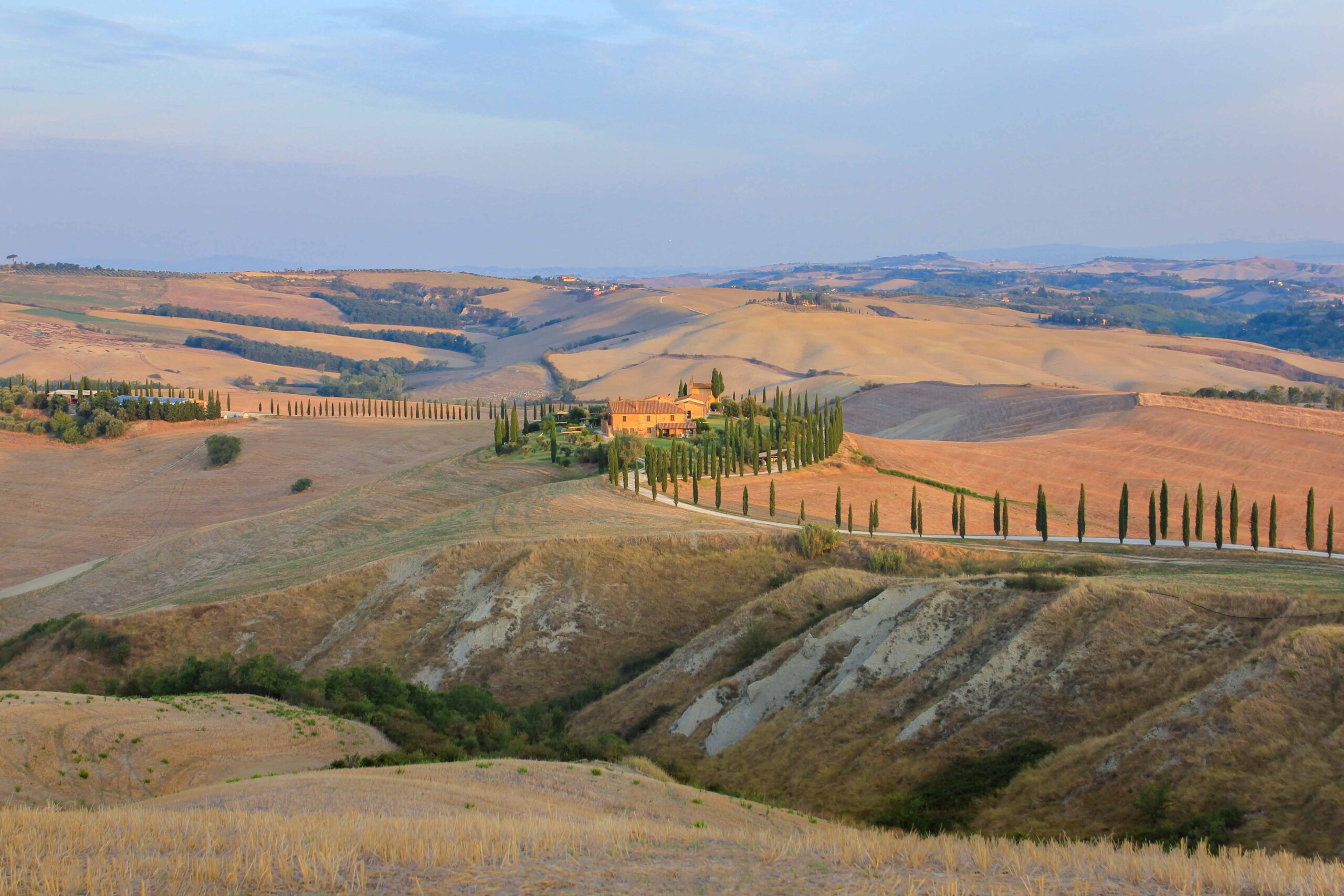 Le point de vue du Podere Belvedere est un véritable point fort du Val d’Orcia, en particulier pour ceux qui aiment prendre des photos. C’est là que sont prises les photos de renommée mondiale qui vous viennent à l’esprit lorsque vous pensez à la belle Toscane. C’est une ancienne ferme encadrée de cyprès dans un beau paysage vallonné d’oliviers et de vignes. L’ambiance ici est particulièrement magnifique tôt le matin ou vers le soir quand un léger brouillard est au-dessus des champs.