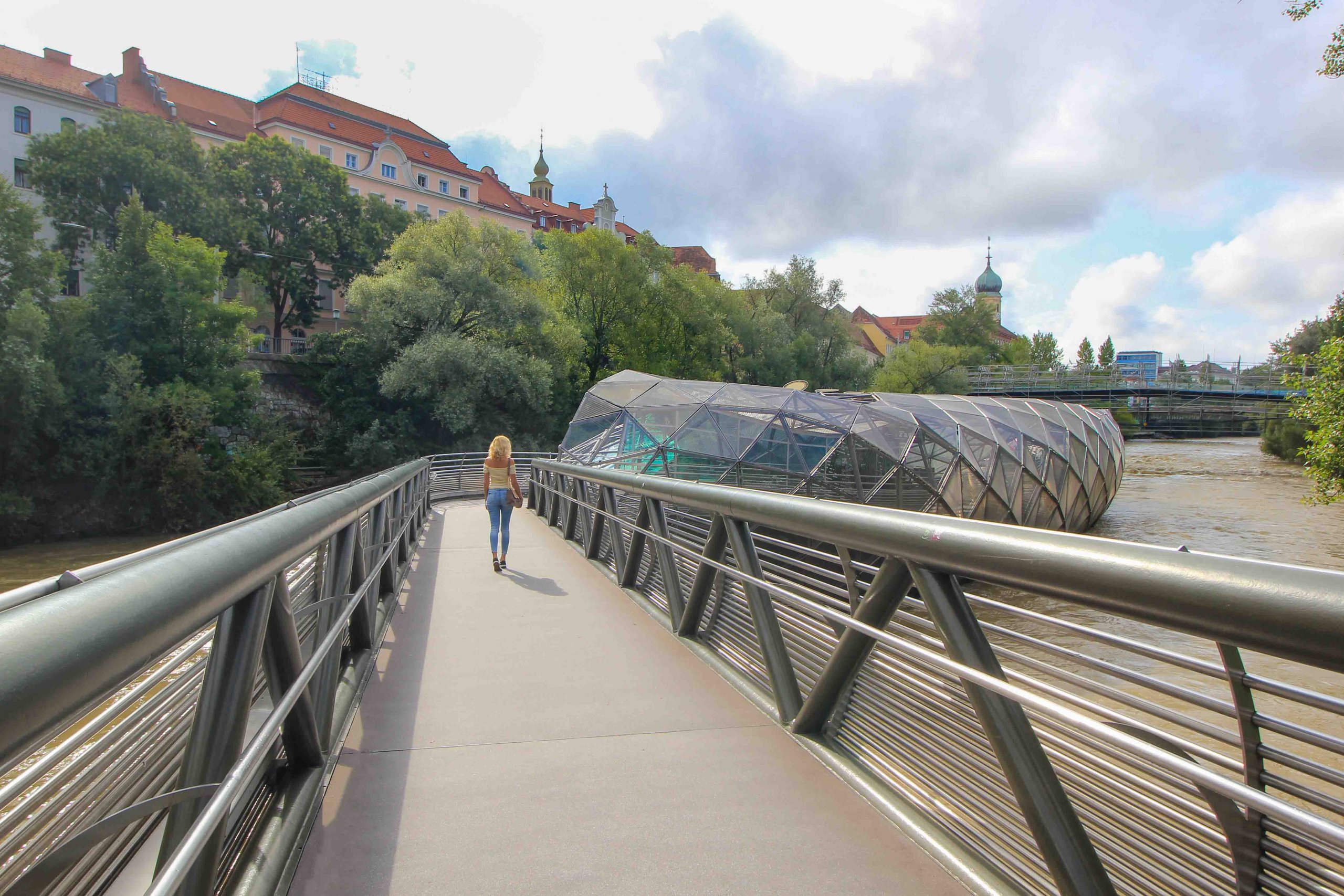 The Murinsel (Mur Island) was built as part of the 2003 Capital of Culture and is now a popular place to visit in Graz, which has actually become a landmark of the city. It is a floating island, which can be accessed from both sides of the river Mur via a bridge. The really cool, futuristic design in the form of a half-open shell is particularly captivating. Inside, there is a cozy café that invites you to take a sightseeing break with a view of the rushing Mur.