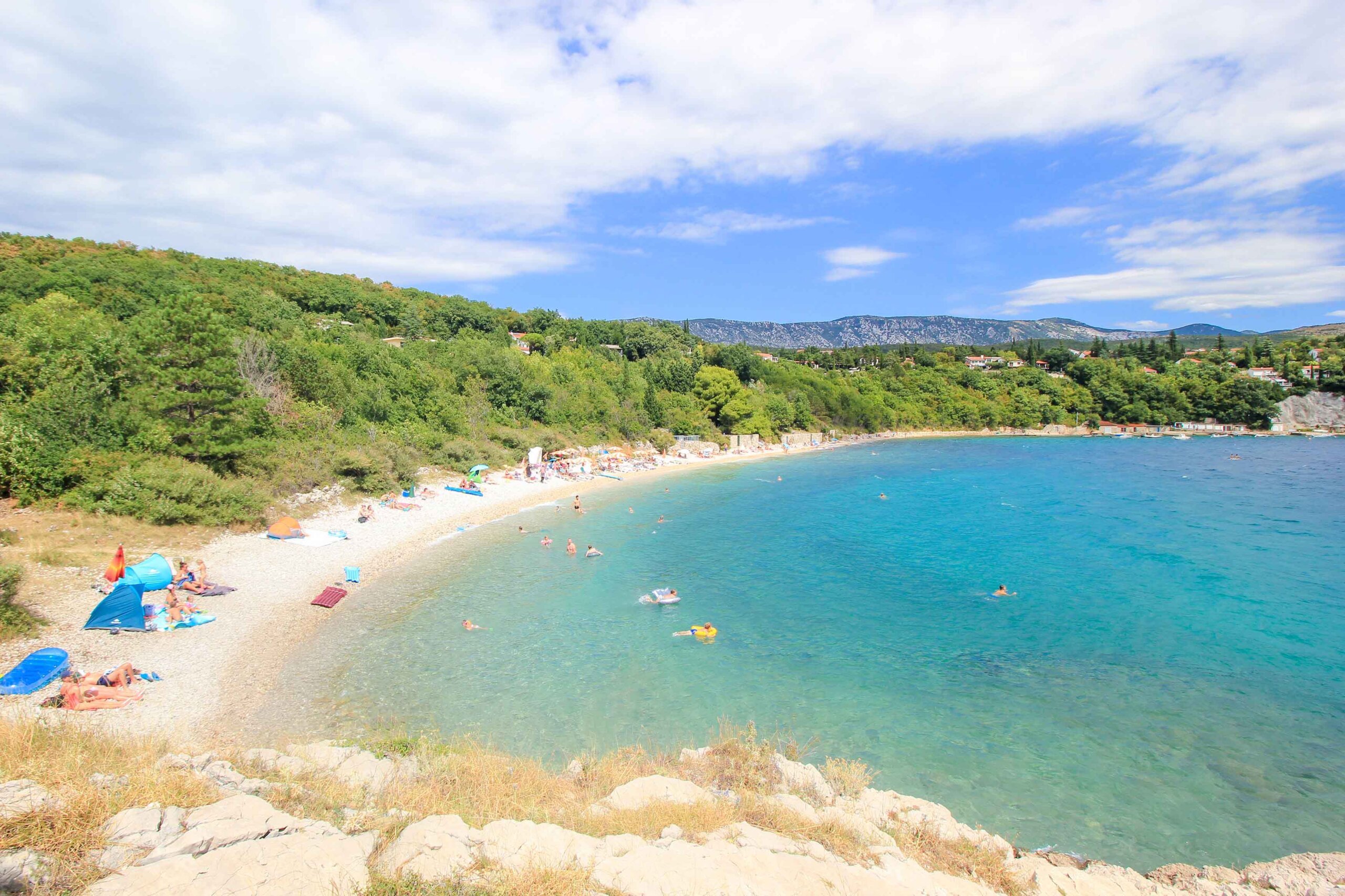 Havisce beach is a real insider’s tip for a quiet vacation in Jadranovo! The bay is located under an idyllic vacation settlement and impresses with breathtaking scenery, snow-white shining pebbles and the enchanting turquoise blue sea colors. Especially, couples and tourists looking for peace and quiet, like to come here to enjoy relaxed beach-time away from the hustle and bustle of the typical main beaches.